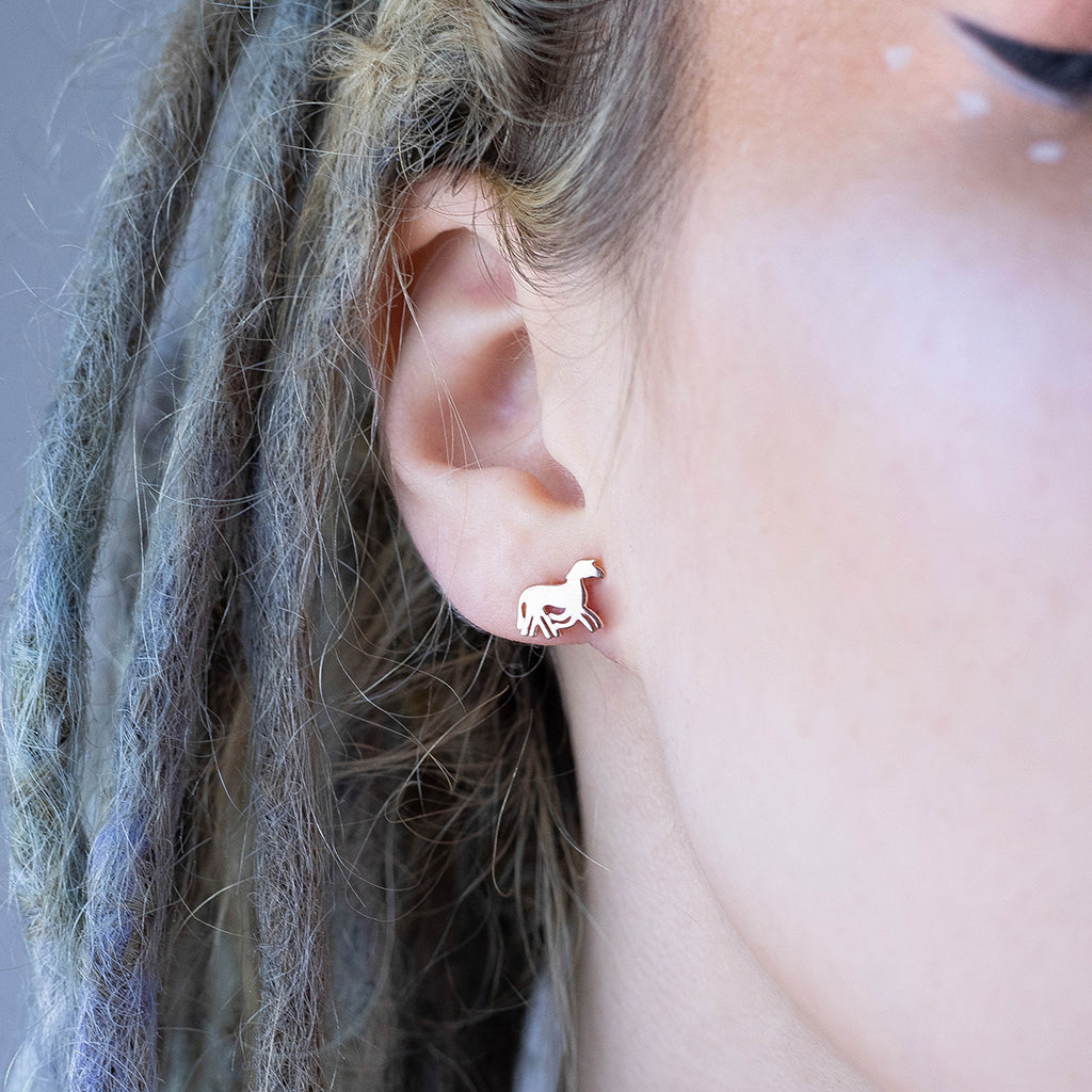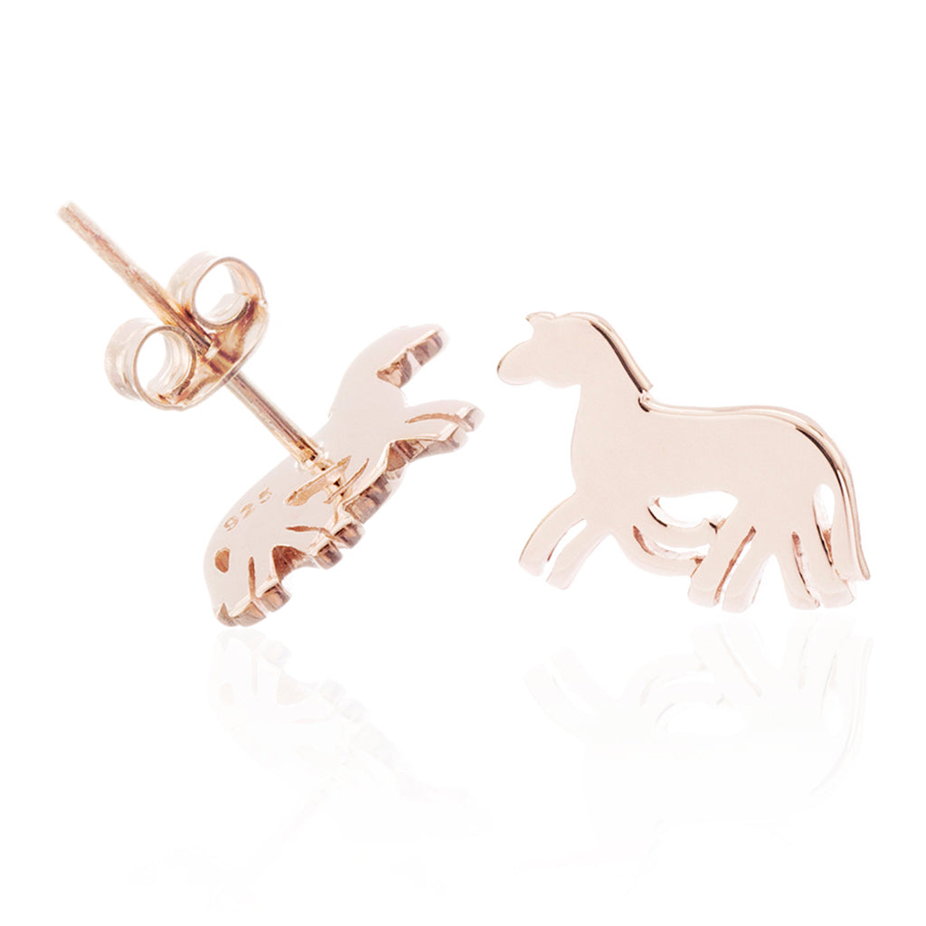 A pair of beautiful earrings depicting Sleipnir, the eight-legged steed of Odin - the chieftain of the Norse gods. Expertly handmade of solid sterling silver 925 with an 18 carat rose gold plating, they are guaranteed to please.