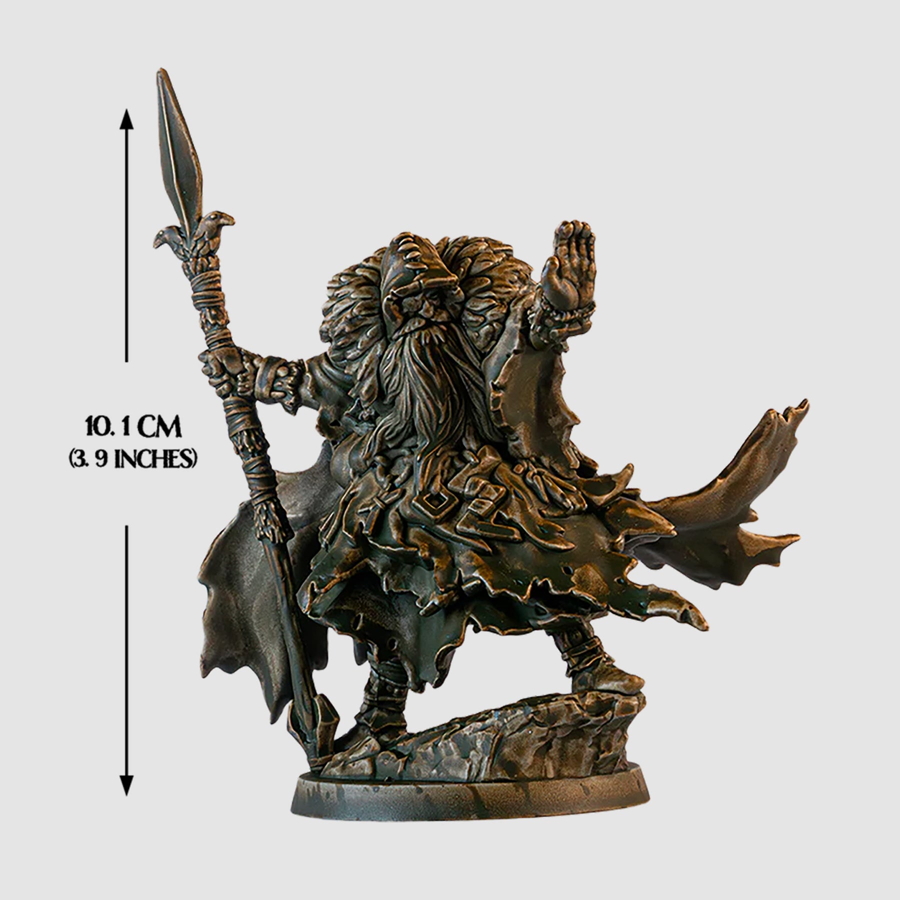 Odin, the one-eyed king of the gods, feared for his vast knowledge and cunning nature. He wields the deadly spear Gungrir, and is a master of secret rune magic, making him a fearsome foe. He is always flanked by his trusted ravens Huginn and Muninn.