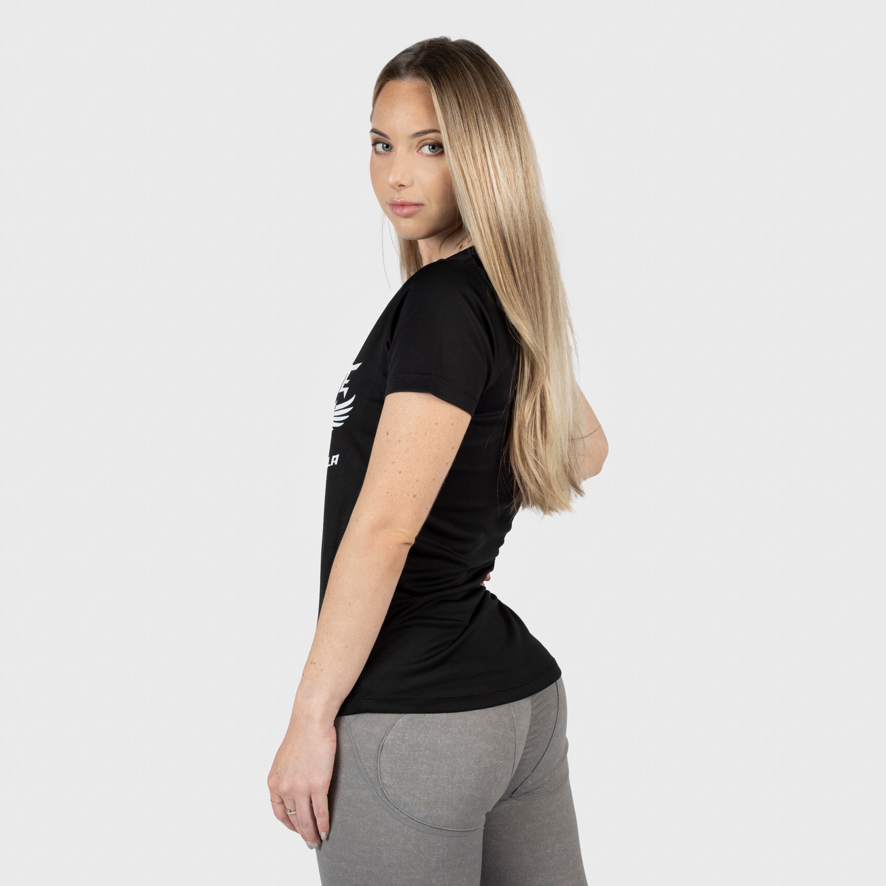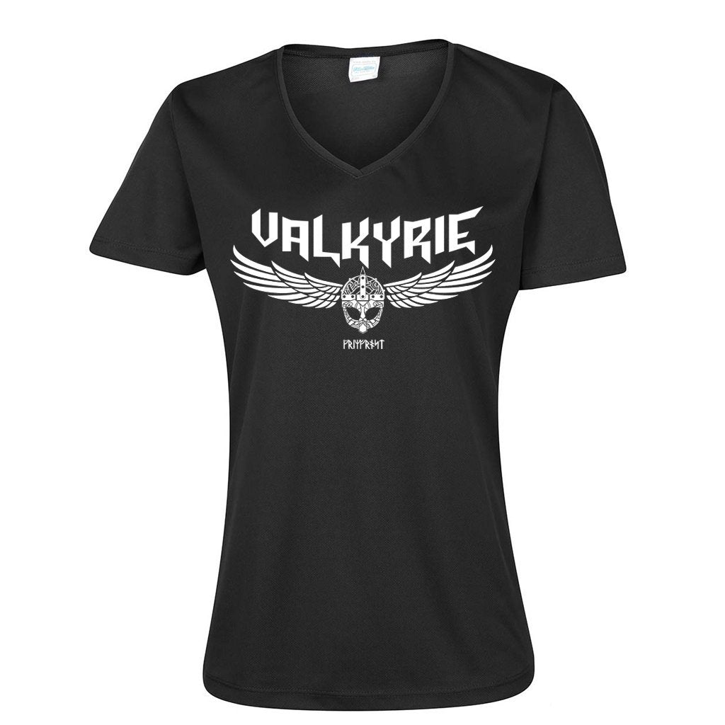 Women's v-neck t-shirt that keeps up with all forms of workouts. It is handprinted in Sweden with a Valkyrie front print. The soft, stretchy fabric provides top comfort and support. The trademark technology fabric has excellent wicking and moisture management properties that are perfect for the most intense workout - this tee won't disappoint.