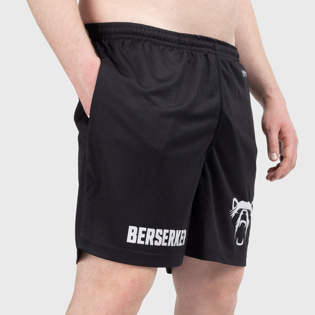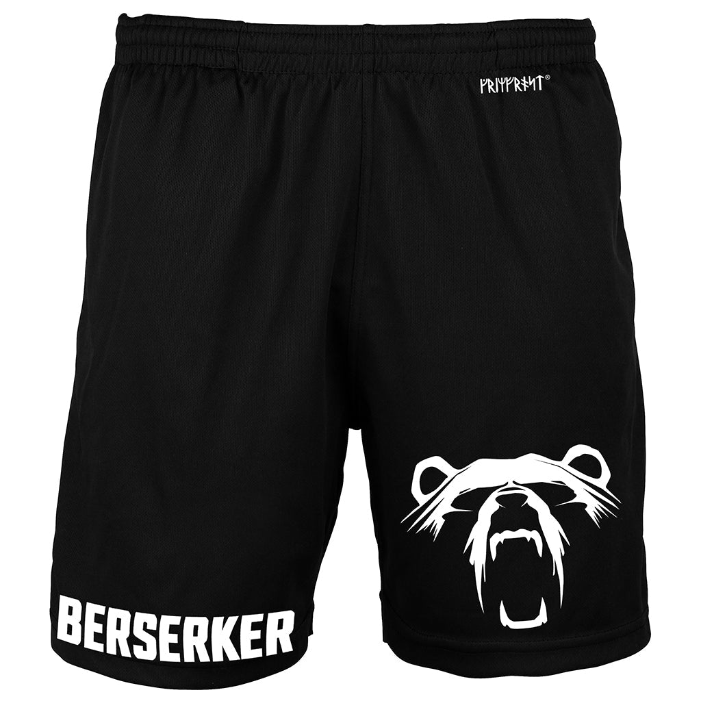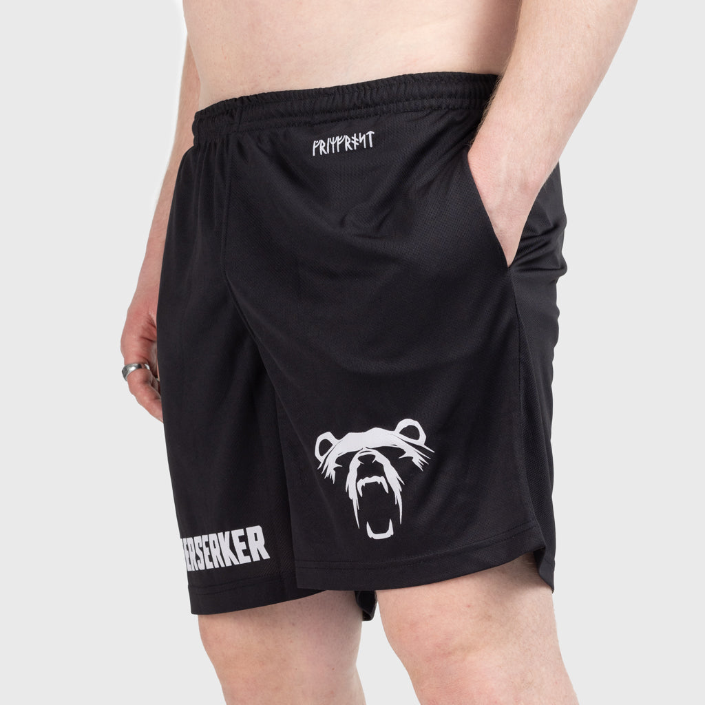 Super comfortable shorts for all forms of workouts. They are printed with a roaring bear that represents a berserker's state of mind. The shorts feature an elasticated waistband with drawcords, side pockets for storage, sweat wicking fabric and plenty of room to move during your workout.