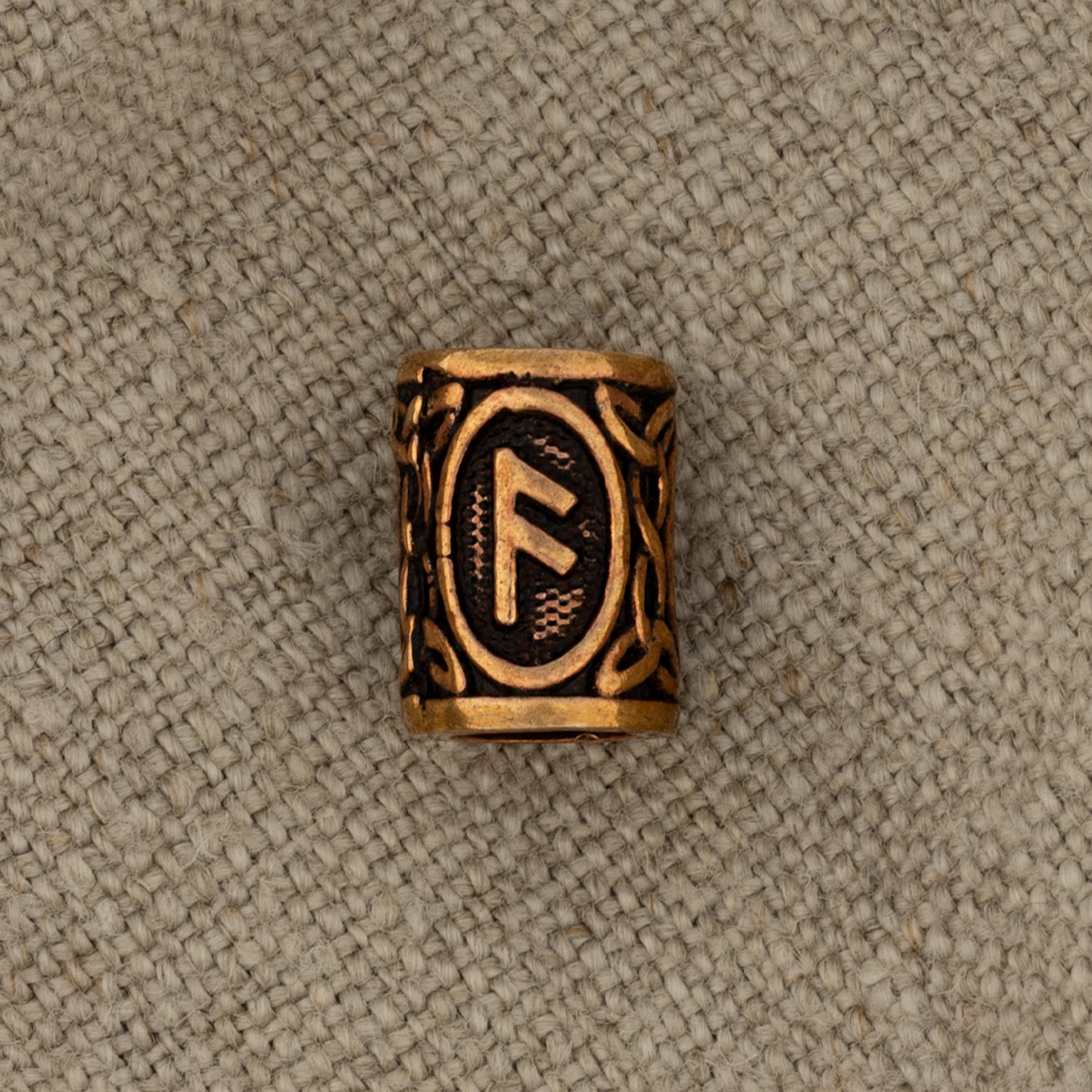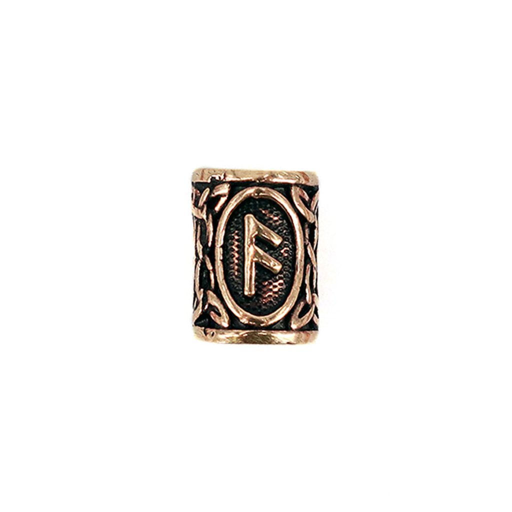 A large beard ring in bronze with the Ansuz rune.