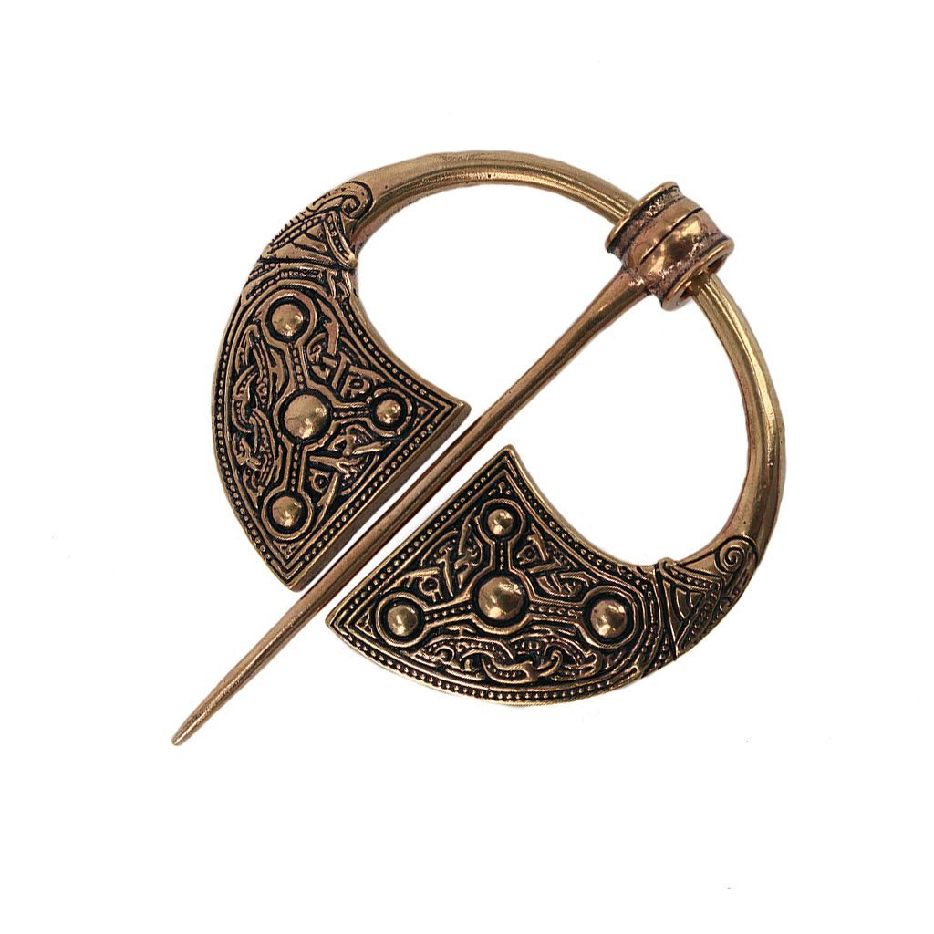 A detailed, high-quality Viking fibula dated to the early 900s. Crafted from solid bronze, it is based on a find from Kilkenny in Ireland where Vikings visited frequently. These large brooches were used to fasten cloaks, furs and other heavy garments.