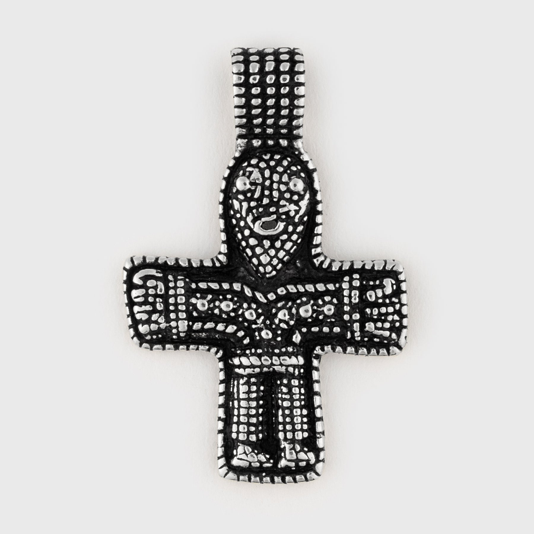 Reproduction of a Viking Age crucifix found in Birka, Sweden. It was found in the grave of rich woman who lived in the 800s. The exact same design has surfaced elsewhere as well, such as in Ketting and Nyborg in Denmark. The original find can be found in the Swedish History Museum under inventory no. SHM108914