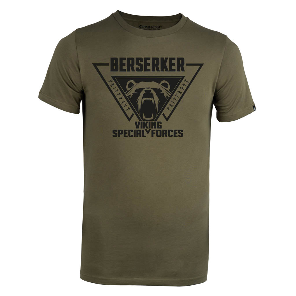 It is printed with "Berserker, Viking Special Forces", a Valknut triple-triangle and a roaring bear. The Valknut is a symbol of Odin, the god of the Berserker. The bear represents the state of mind of the raging Berserker.