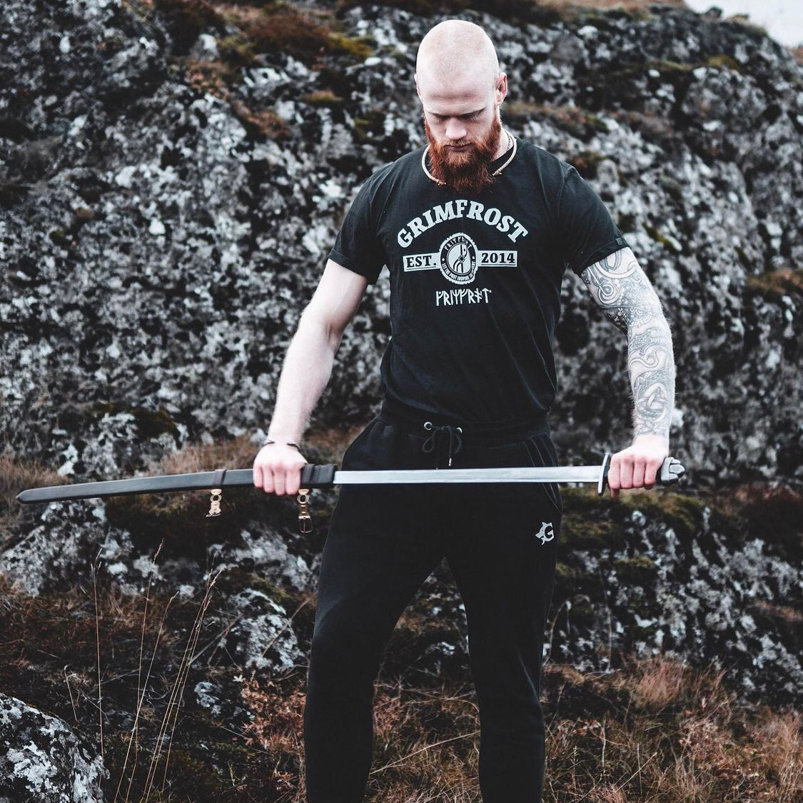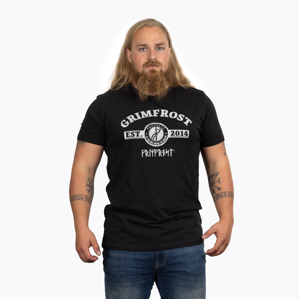 Premium T-shirt that works equally well on the street as in the gym. It is custom-made for Grimfrost in soft, luxurious organic cotton. Even the dyeing and printing processes are fully organic, which is good for both You and Mother Earth.
