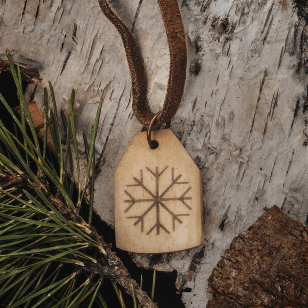 Handmade bone amulet with Aegishjálmur - an Icelandic magical stave believed to induce fear in one's enemies.