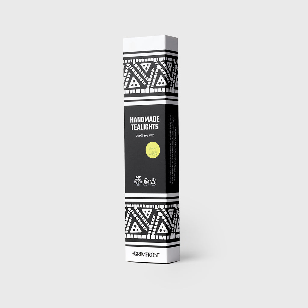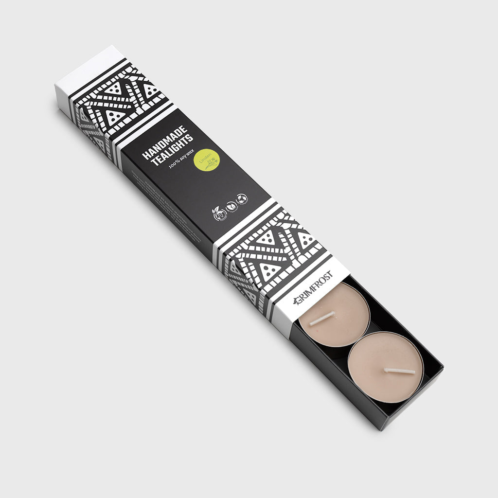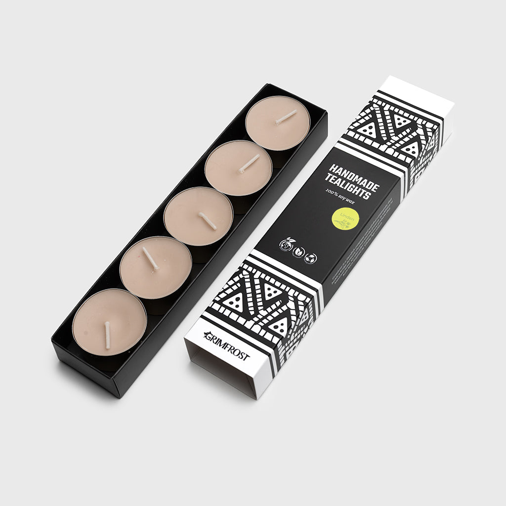 Schöne Wachsteelichter, handgefertigt mit 100% natürlichem Sojawachs und Baumwolldocht. Die Verpackung wird mit ungiftigen Farben und grüner LED-UV-Technologie bedruckt.