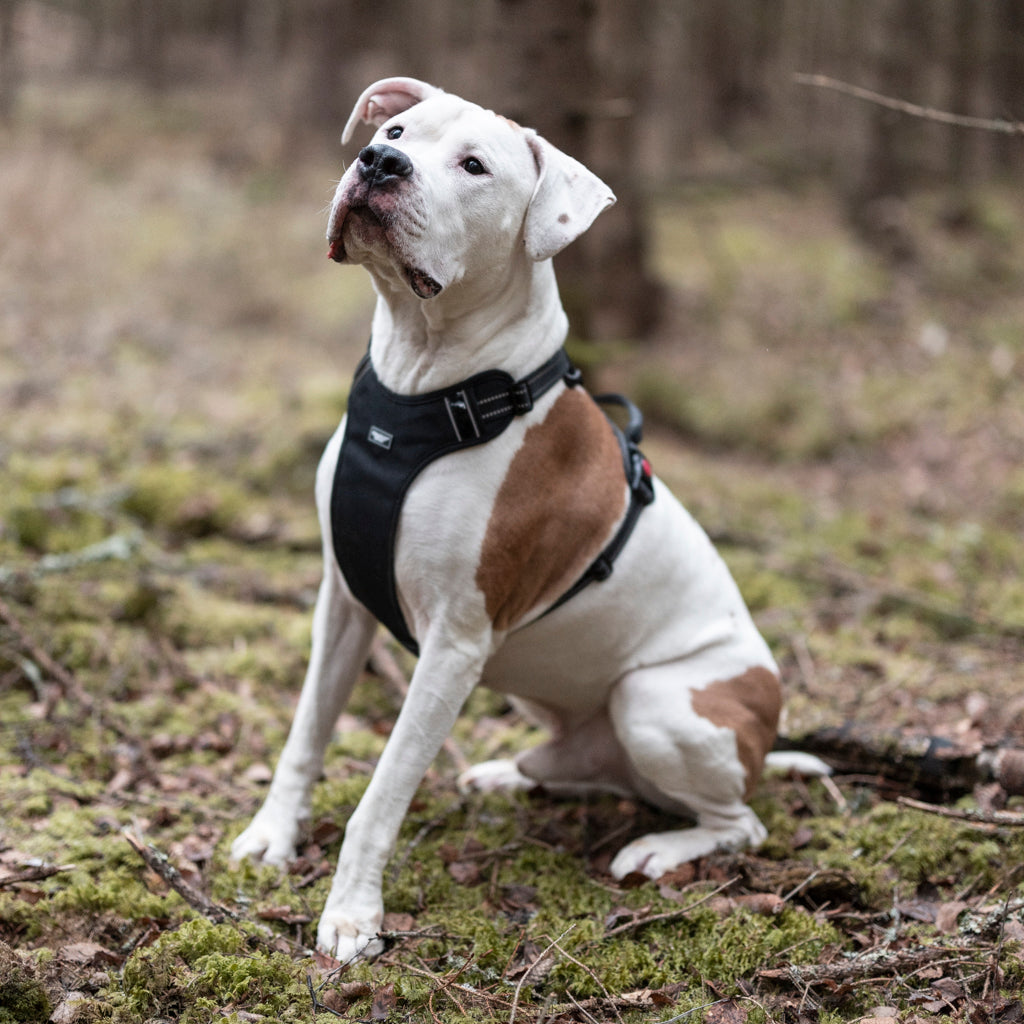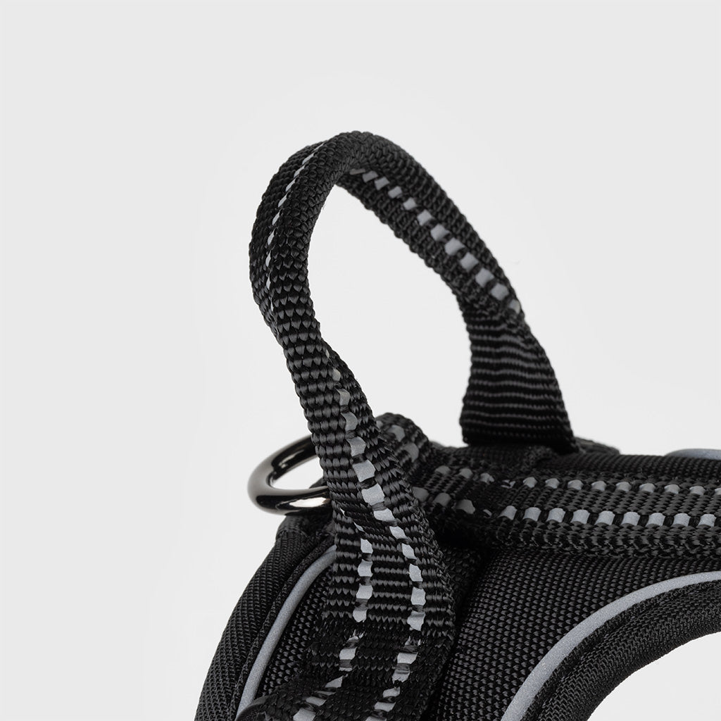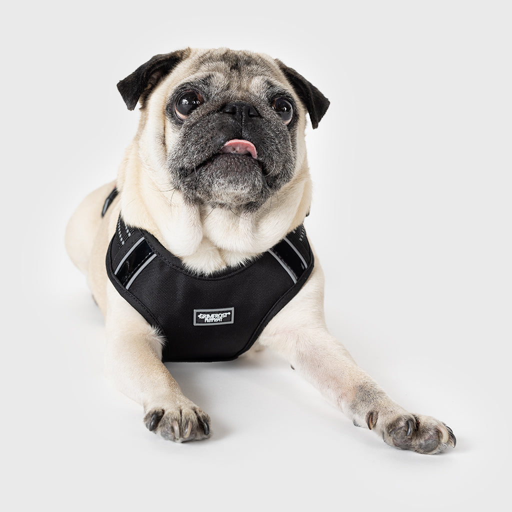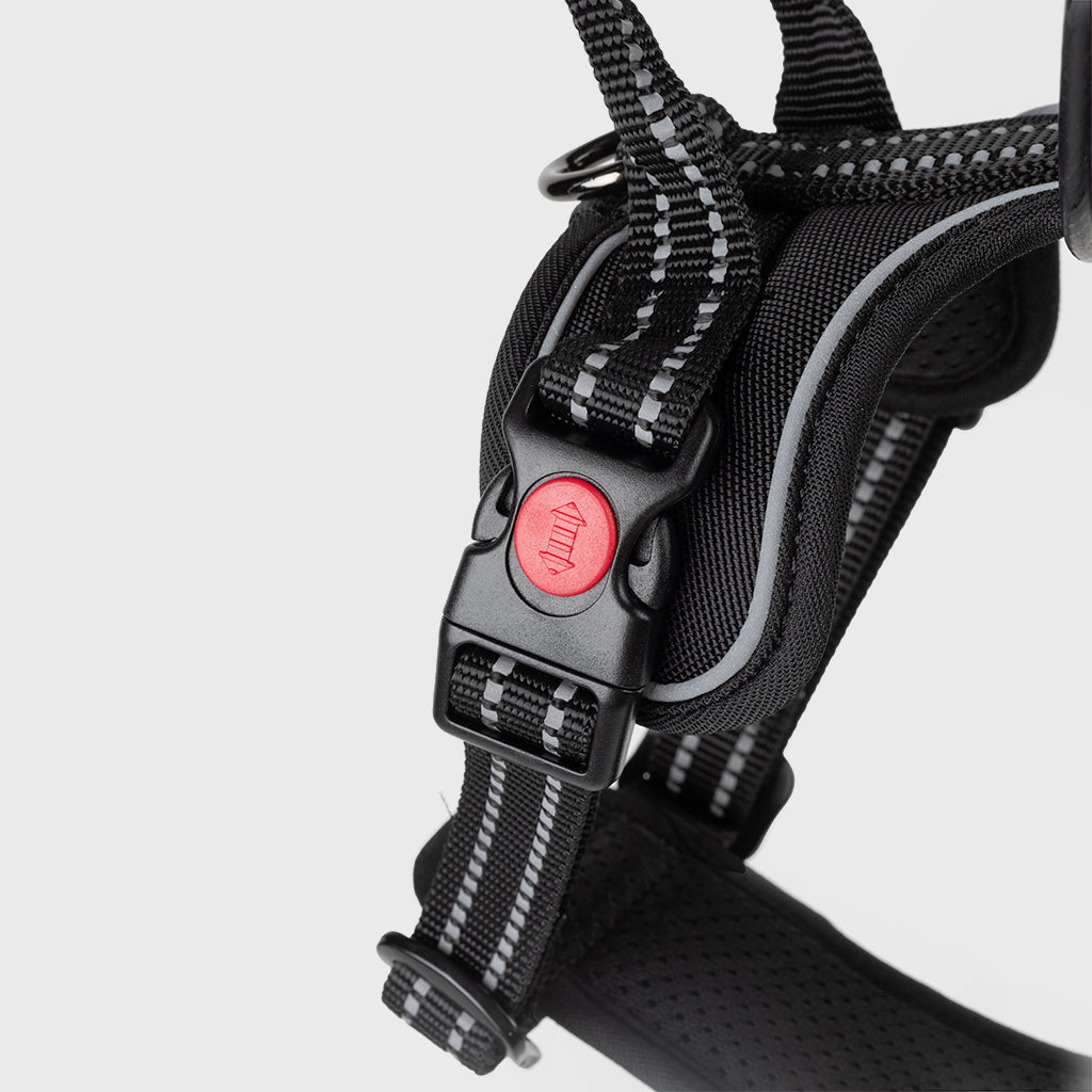 Das Hundegeschirr von Grimfrost ist einfach zu bedienen und leicht zu tragen. Es ist perfekt, um Ihren Hund unter Kontrolle zu halten und dennoch bequem zu tragen. Es ist mit einem Haltegriff für zusätzliche Kontrolle, einer reflektierenden Zierleiste für bessere Sichtbarkeit und einem gepolsterten Innenfutter ausgestattet. Die Schnellverschlussschnallen sind abschließbar.