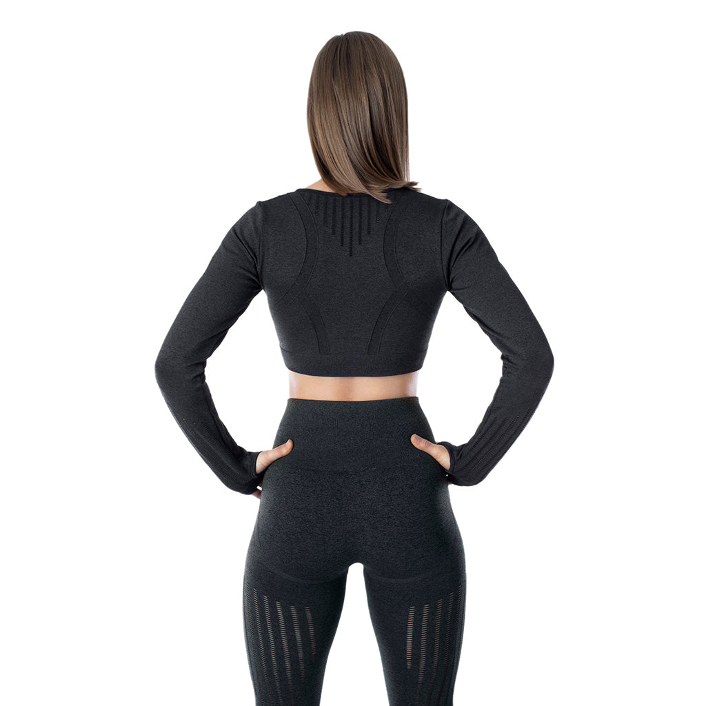 Passende Leggings und Crop Top mit Netzdetail. Sie sind aus einem schlankmachenden, bequemen Material gefertigt, das weder zu dünn noch zu heiß ist. Das Design stärkt Ihre Körperhaltung und glättet an den richtigen Stellen. Tragen Sie die Leggings beim Yoga, beim Workout oder im Alltag.
