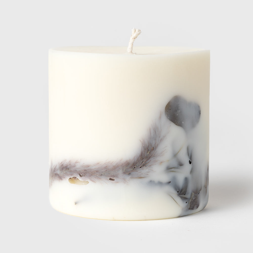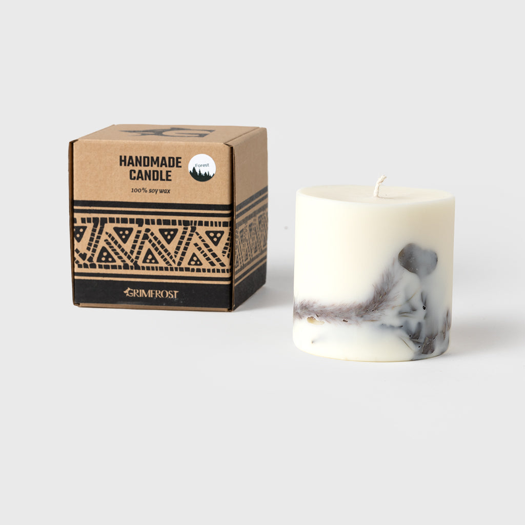 Wunderschöne Wachskerze handgefertigt mit 100% natürlichem Sojawachs, Baumwolldocht und natürlichen Dekoren aus baltischen Wäldern und Wiesen. Die Geschenkverpackung ist aus hochwertigem, plastikfreiem Kraftkarton gefertigt. Sie ist mit ungiftigen Farben und grüner LED-UV-Technologie bedruckt.