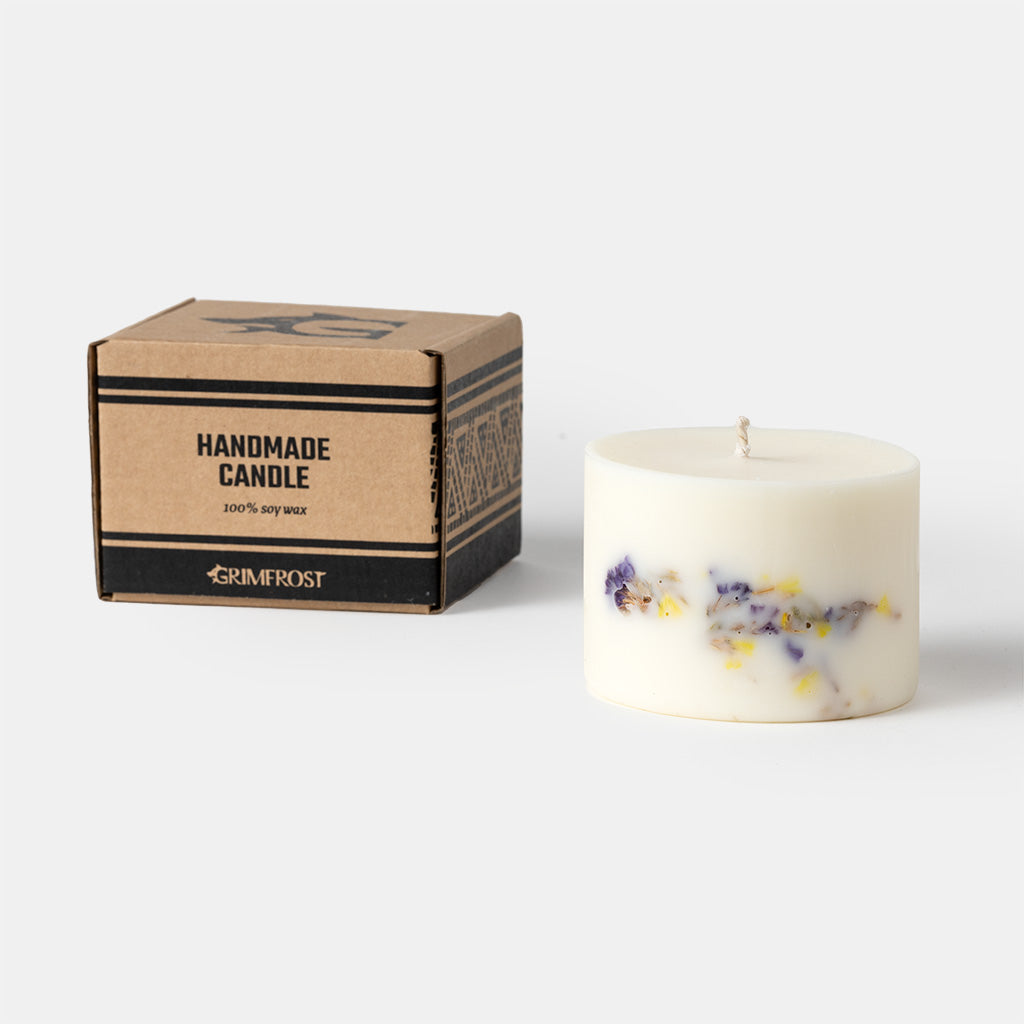 Wunderschöne Wachskerze handgefertigt mit 100% natürlichem Sojawachs, Baumwolldocht und natürlichen Dekoren aus baltischen Wäldern und Wiesen. Die Geschenkverpackung ist aus hochwertigem, plastikfreiem Kraftkarton gefertigt. Sie ist mit ungiftigen Farben und grüner LED-UV-Technologie bedruckt.