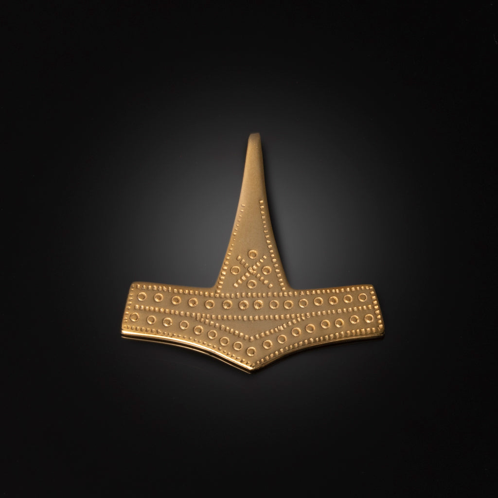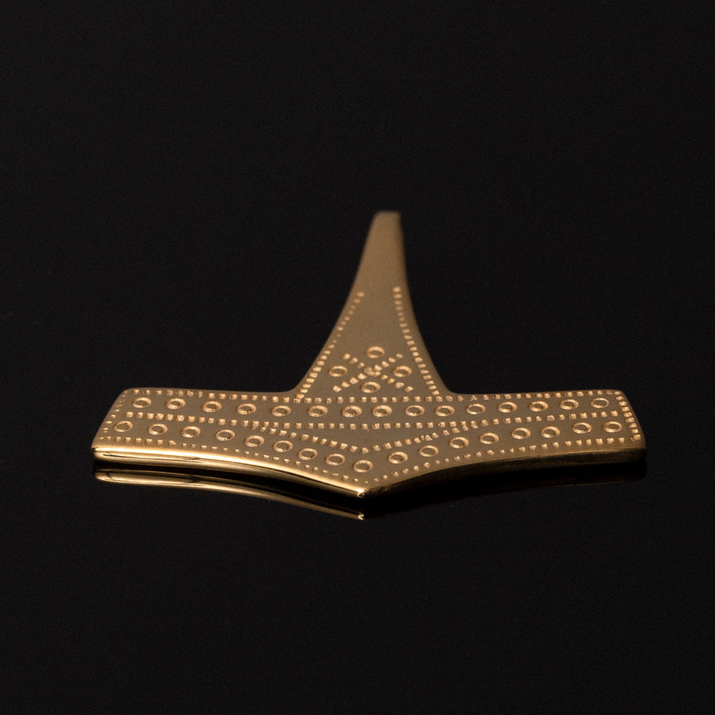 Der fertige Thorshammer ist mit einer 5 Mikrometer dicken 24-Karat-Vergoldung vergoldet.