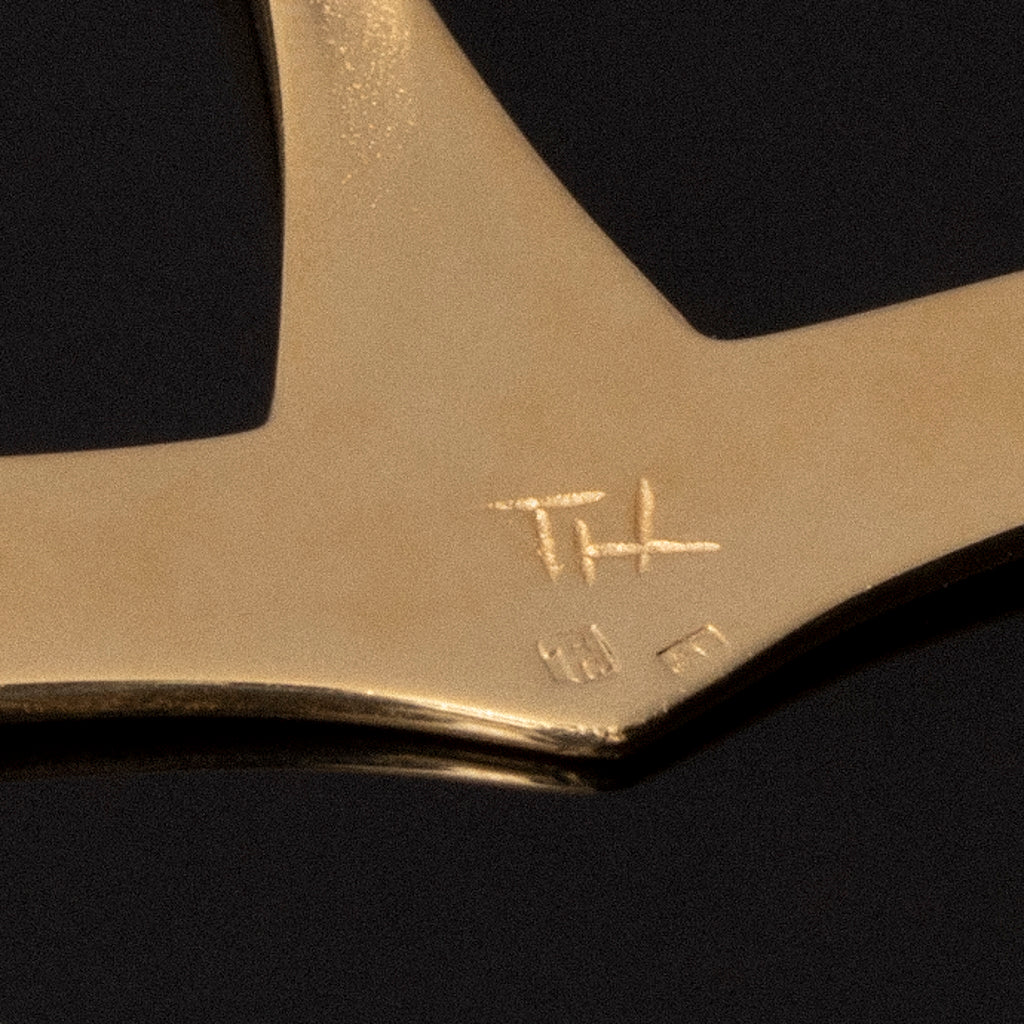 Dieser Ultra-Premium Thorshammer Replik ist aus Feinsilber gefertigt und mit einer 5 Mikrometer dicken Schicht aus 24 Karat Gold überzogen. Basierend auf einem Fund in der Nähe von Rømersdal, Bornholm in Dänemark. Er ist für echte Kenner der wikingerzeitlichen Kunst, die die historische Authentizität und die enorme Arbeit schätzen, die für die Herstellung eines so aufwändigen Stücks wie dieses erforderlich ist. Es ist mit viel Liebe zum Detail gefertigt und mit Stempeln verziert, genau wie der Originalfund.