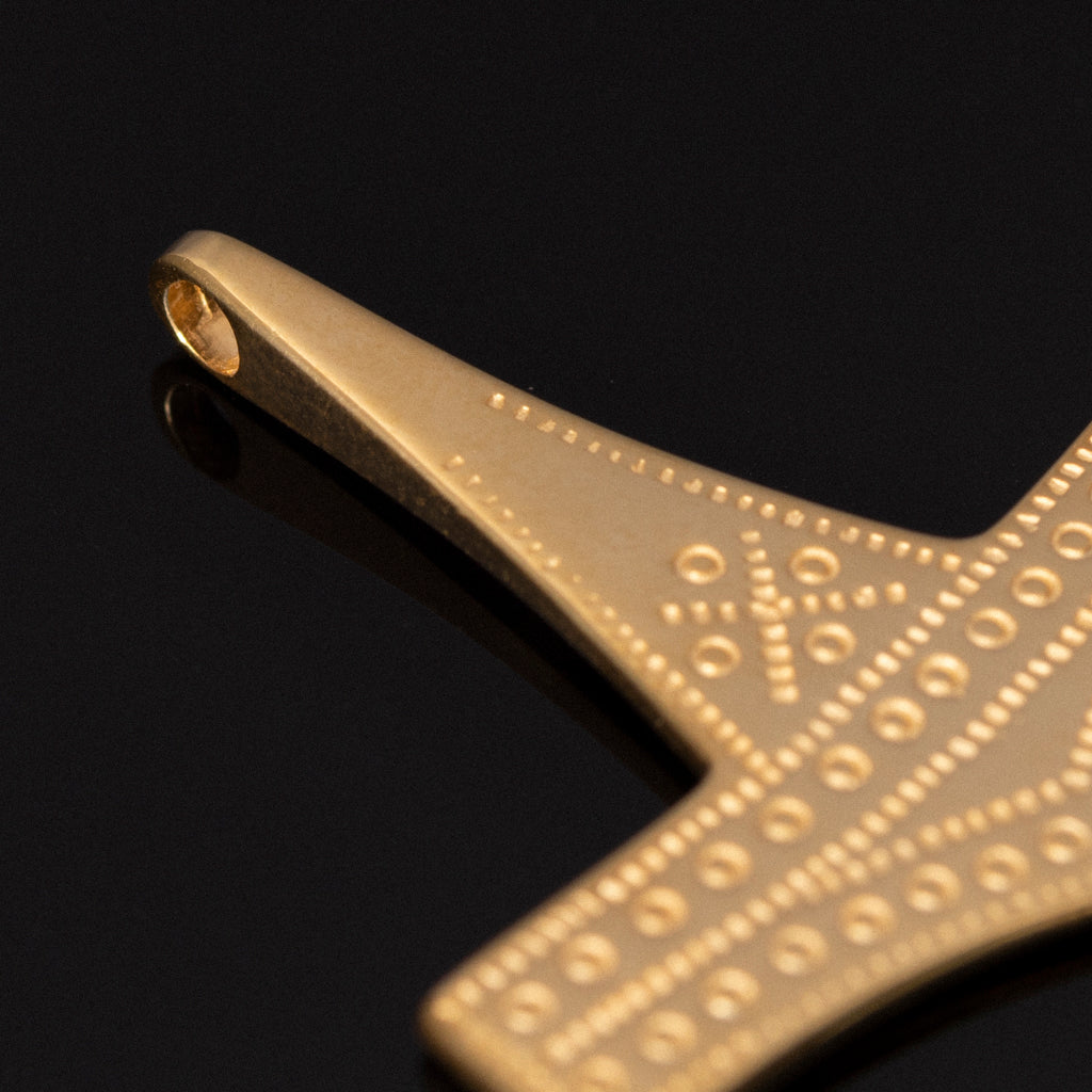 Dieses Schmuckstück ist mit 5 (!) Mikron vergoldet. Zum Vergleich: Das ist die Beschichtung vieler Kirchengegenstände.