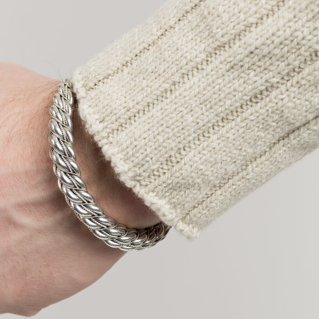Der Pullover besteht zu 45% aus Bio-Merinowolle und zu 55% aus Bio-Baumwolle, was gut für Sie und Mutter Erde ist.