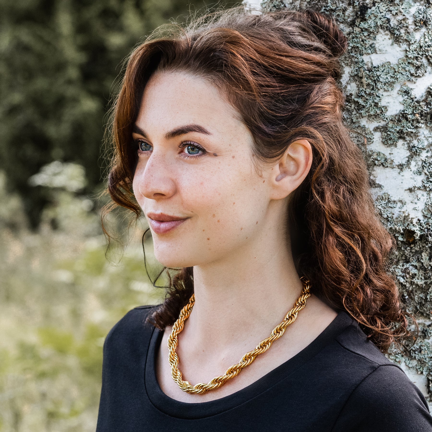 Seilkettenglied, gedreht und gewebt, um das Aussehen eines Seils zu erzielen. Kann sowohl einzeln als auch mit einem Anhänger getragen werden.