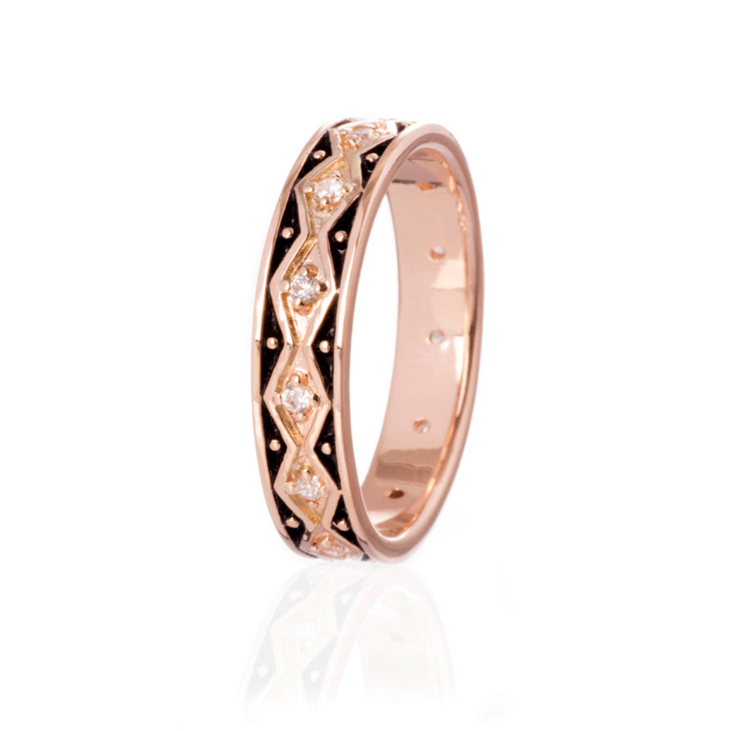 Ein wunderschöner Ring mit einem von der skandinavischen Kreuzotter inspirierten Muster. Fachmännisch handgefertigt aus massivem 925er Sterlingsilber mit einer 18 Karat Rosévergoldung, wird er garantiert gefallen.