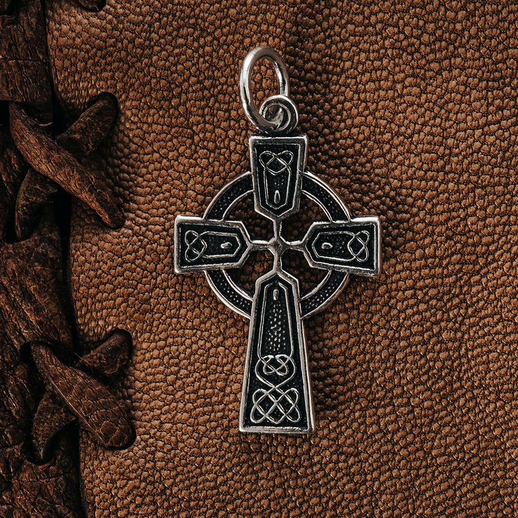 Keltisches Kreuz handgefertigt in massivem Sterlingsilber 925. Das Design entstand in Irland und Großbritannien im frühen Mittelalter und war vom 9. bis zum 12. Jahrhundert weit verbreitet - genau dann, als die Wikinger die britischen Inseln überfielen und kolonisierten.