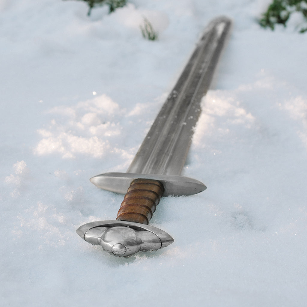 Das Witham Sverth ist ein wikingerzeitliches Schwert, inspiriert von einem Fund in Fluss Witham gegenüber der Monks Abbey in Lincoln, UK. Die zweischneidige Klinge ist aus gehärtetem, kohlenstoffreichem EN45-Stahl gefertigt und wird mit einer markanten Hohlkehle geliefert. Die Parierstange und der Knauf sind ebenfalls aus Stahl gefertigt. Zum Lieferumfang des Schwertes gehören eine lederumwickelte Scheide und ein Gürtel. Der Gürtel kann leicht verstellt werden, so dass das Schwert auf der rechten Seite der Hüfte getragen werden kann. Das Schwert kann für Kostümierungen und Reenactment-Zwecke verwendet werden. Es ist jedoch nicht vollständig abgestumpft und daher nicht für Reenactment-Kämpfe geeignet.