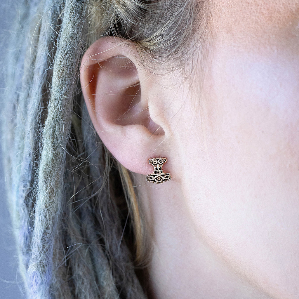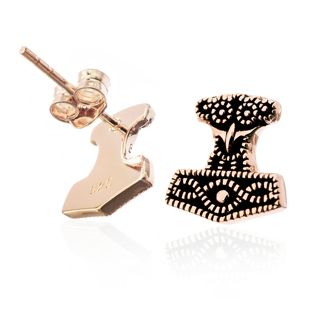 Schöne Ohrringe, die inspiriert sind von dem Rabenkopf Thorshammer-Anhänger aus Skåne, Schweden. Fachmännisch handgefertigt aus massivem 925er Sterlingsilber mit einer 18 Karat Rosévergoldung, werden sie garantiert gefallen.