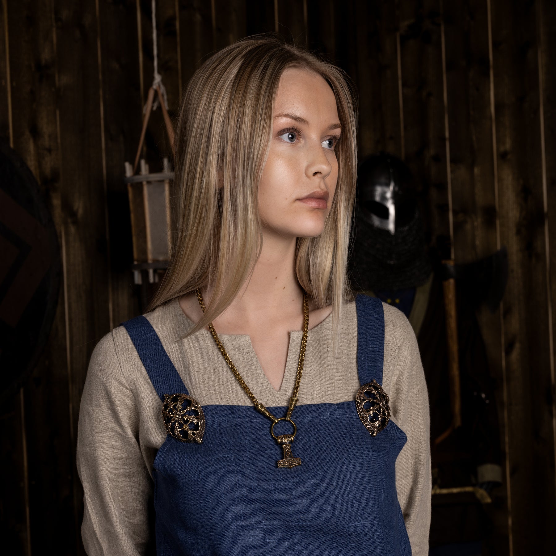 Ein Paar sorgfältig handgefertigter und detaillierter Schalenfibeln von kleiner Größe und geringem Gewicht. Schalenfibeln (Kleidfibeln) werden paarweise an der Vorderseite des Wikingerkleides getragen. Es war üblich, eine Kette mit Perlen und Anhängern dazwischen zu hängen. Kleine Schalenfibeln sind recht praktisch, da sie das Kleid nicht so stark beschweren. Sie wurden auch von Kindern getragen, wie Funde - etwa aus Birka - zeigen.
