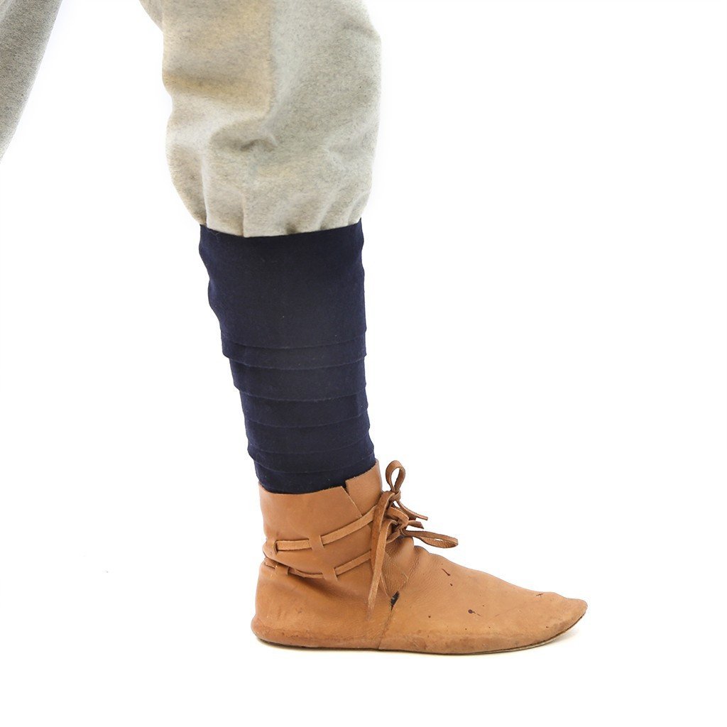 Beinkleider, auch Winingas genannt, waren bei den Wikingern weit verbreitet. Sie bieten Wärme im Winter und schützten die Beine vor Gestrüpp. Sie waren auch Außerdem bieten sie Kompression und Unterstützung für die Waden bei der Arbeit oder im Kampf. Zum Befestigen der Wadenwickel können Sie kleine Fibeln (Broschen) verwenden oder das lose Ende einfach einstecken.