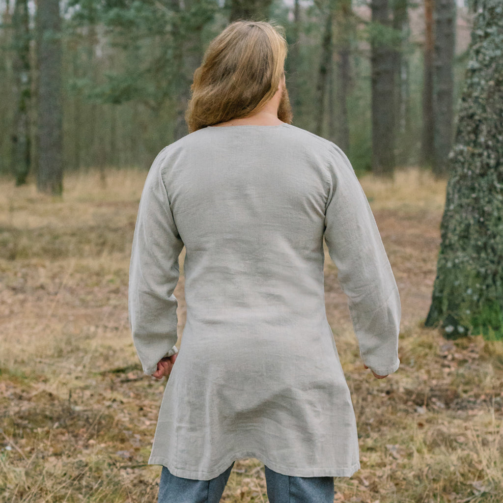 Tunika in voller Länge, die auf historischen Quellen basiert. Sie ist aus echtem baltischem Leinen gefertigt, das sowohl strapazierfähig als auch bequem ist. Tragen Sie sie bei warmem Wetter, oder unter einer Wolltunika in der kalten Jahreszeit.