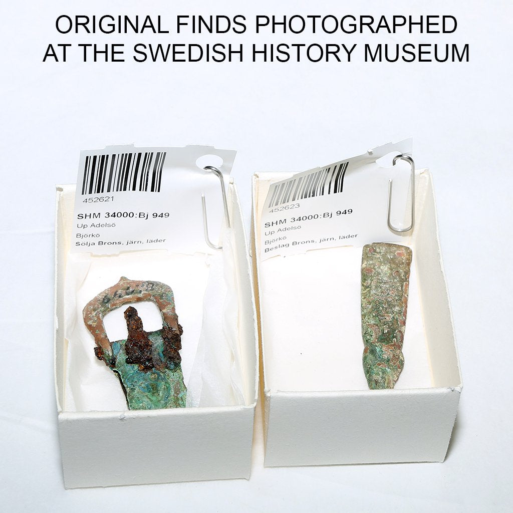 Wikingerzeitlicher Gürtel nach dem Fund aus dem Grab Bj 949 in Birka, Schweden. Wir haben die tatsächlichen Funde persönlich im Schwedischen Geschichtsmuseum untersucht.