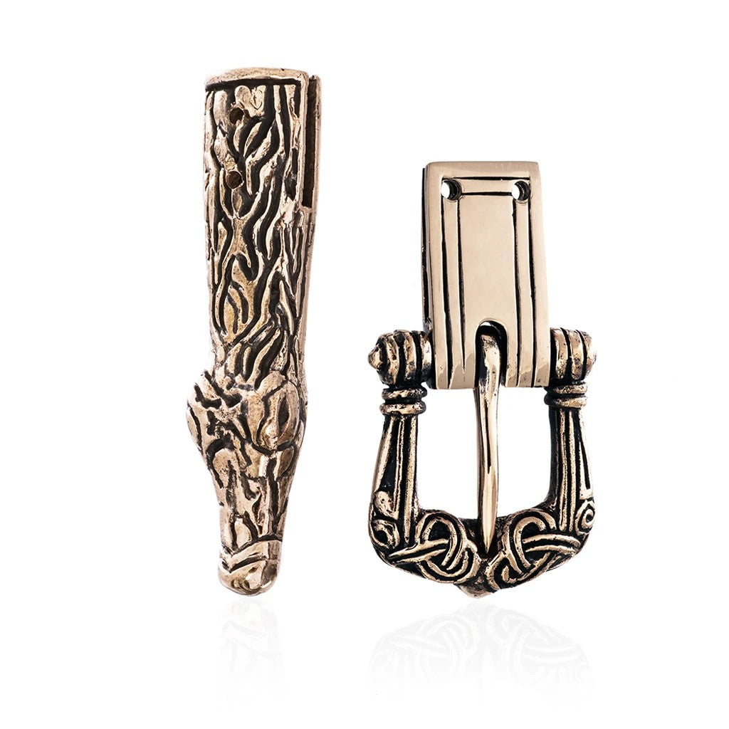 Ein Gürtel gehört zusammen mit Tunika, Hose und Schuhen zur Grundausstattung eines Wikinger-Outfits. Reich verzierte Gürtel wurden nicht von jedem verwendet. Alles, was als Gürtel diente, konnte zum Binden der Tunika an der Taille verwendet werden - wie ein Stück Seil, Stoff oder ein einfacher Lederriemen mit einem Eisenring. Die Breite der Gürtel reichte von 12 mm bis 40 mm, wie Funde aus der Wikingerzeit zeigen.