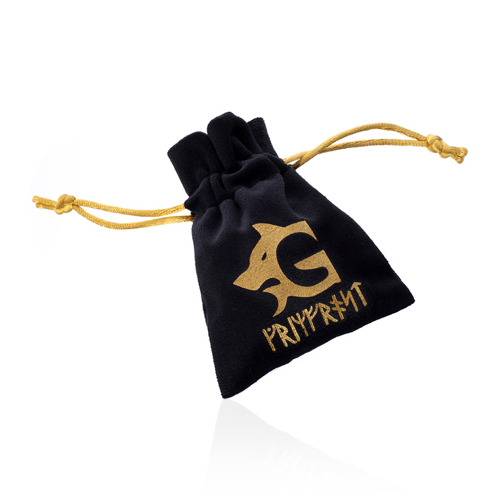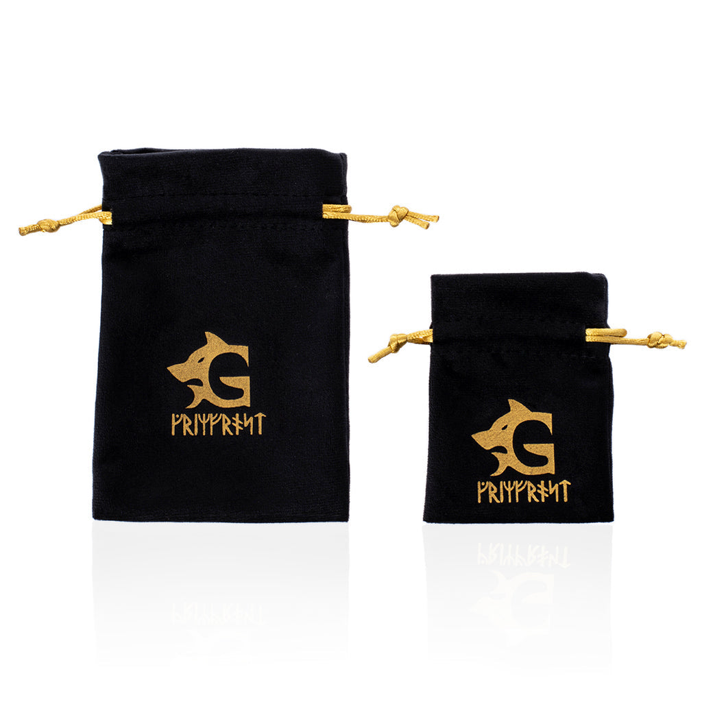 Der perfekte Beutel mit Kordelzug für Ihr Geschenk. Sie ist aus Samt gefertigt und mit dem Grimfrost-Logo bedruckt. Die Tasche gibt es in zwei Größen: Die kleinere ist perfekt für Anhänger, Ringe, Ohrringe und dergleichen, während die mittlere für schwere Halsketten, Armringe und mehr geeignet ist.
