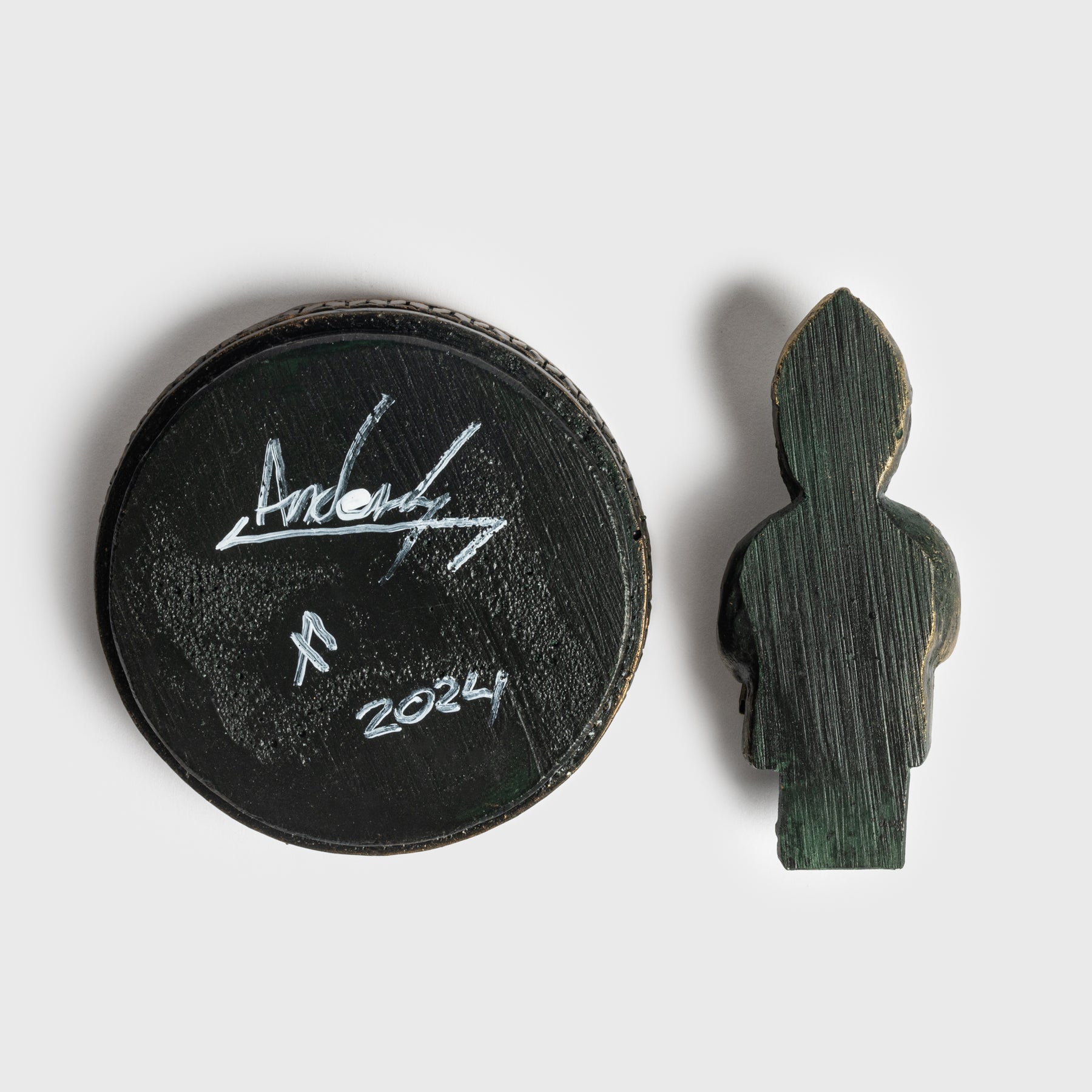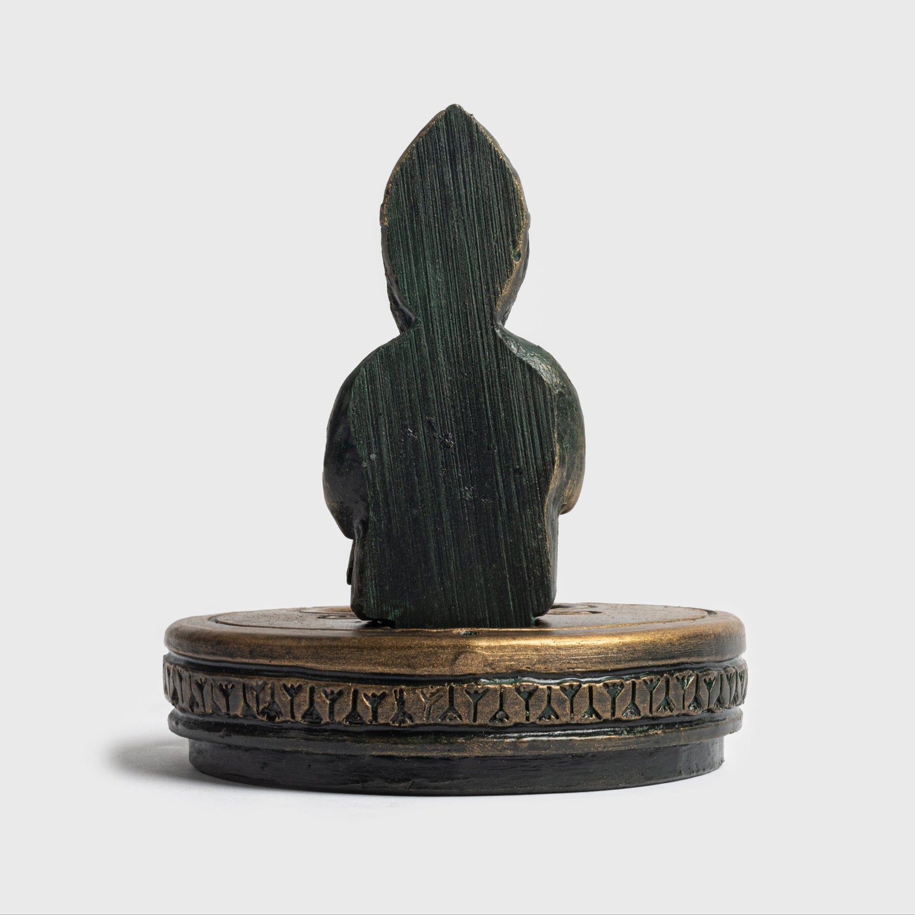 Von einem schwedischen Künstler aus faserverstärktem Guss handgefertigt und bemalt, um antiker Bronze zu ähneln. Es sieht auf jedem Regal, Tisch oder Schrein großartig aus.
