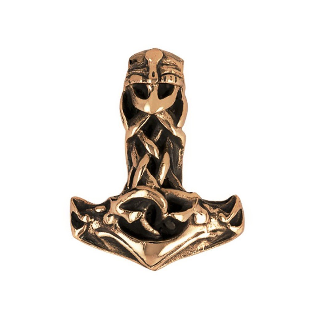 Ein zeitgenössisches Design, inspiriert von authentischen Wikinger-Artefakten. Es ist aus Bronze gefertigt und zeigt die Maske Odins, die sich in den Hammer Thors verwandelt.