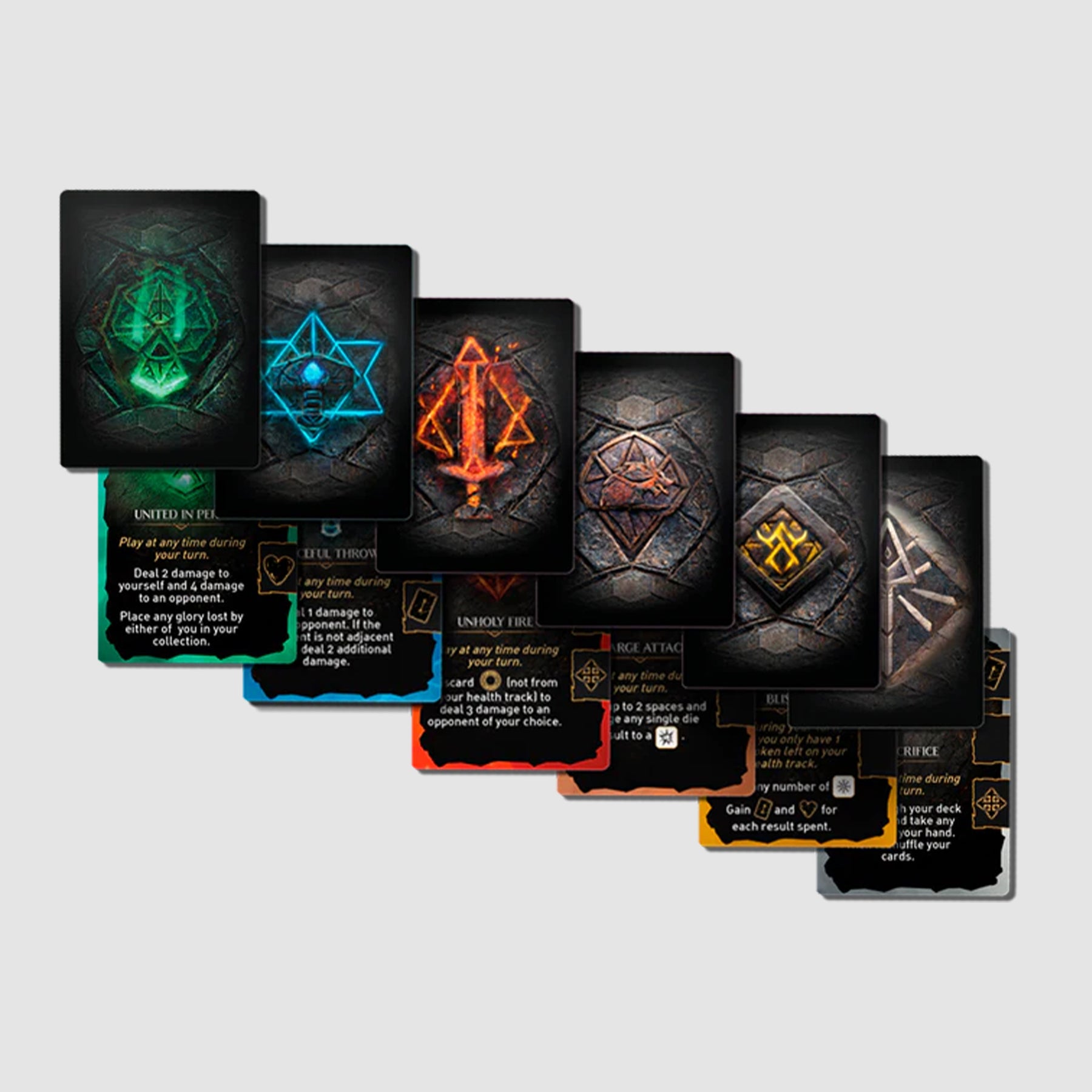 Unique Champion Cards: Each champion has their own deck of unique champion cards, use them to boost your champion or attack your rivals.