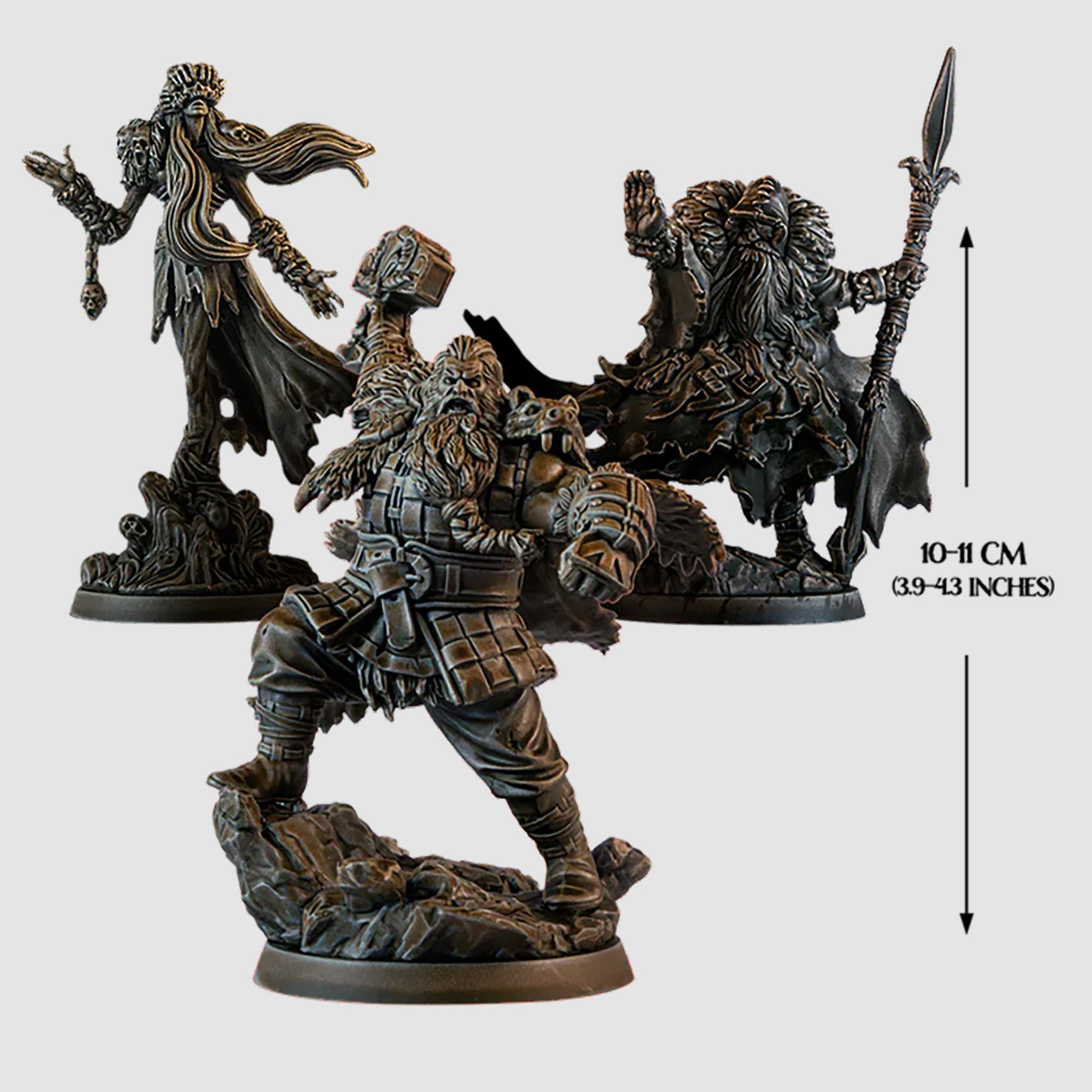 Odin: the one-eyed king of the gods, feared for his vast knowledge and cunning nature. He wields the deadly spear Gungrir, and is a master of secret rune magic, making him a fearsome foe. He is always flanked by his trusted ravens Huginn and Muninn.