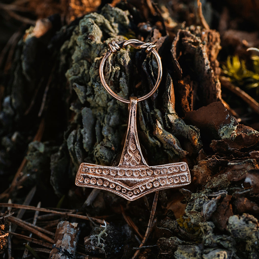 Eine Reproduktion aus Bronze eines in Dänemark gefundenen Thorshammer.