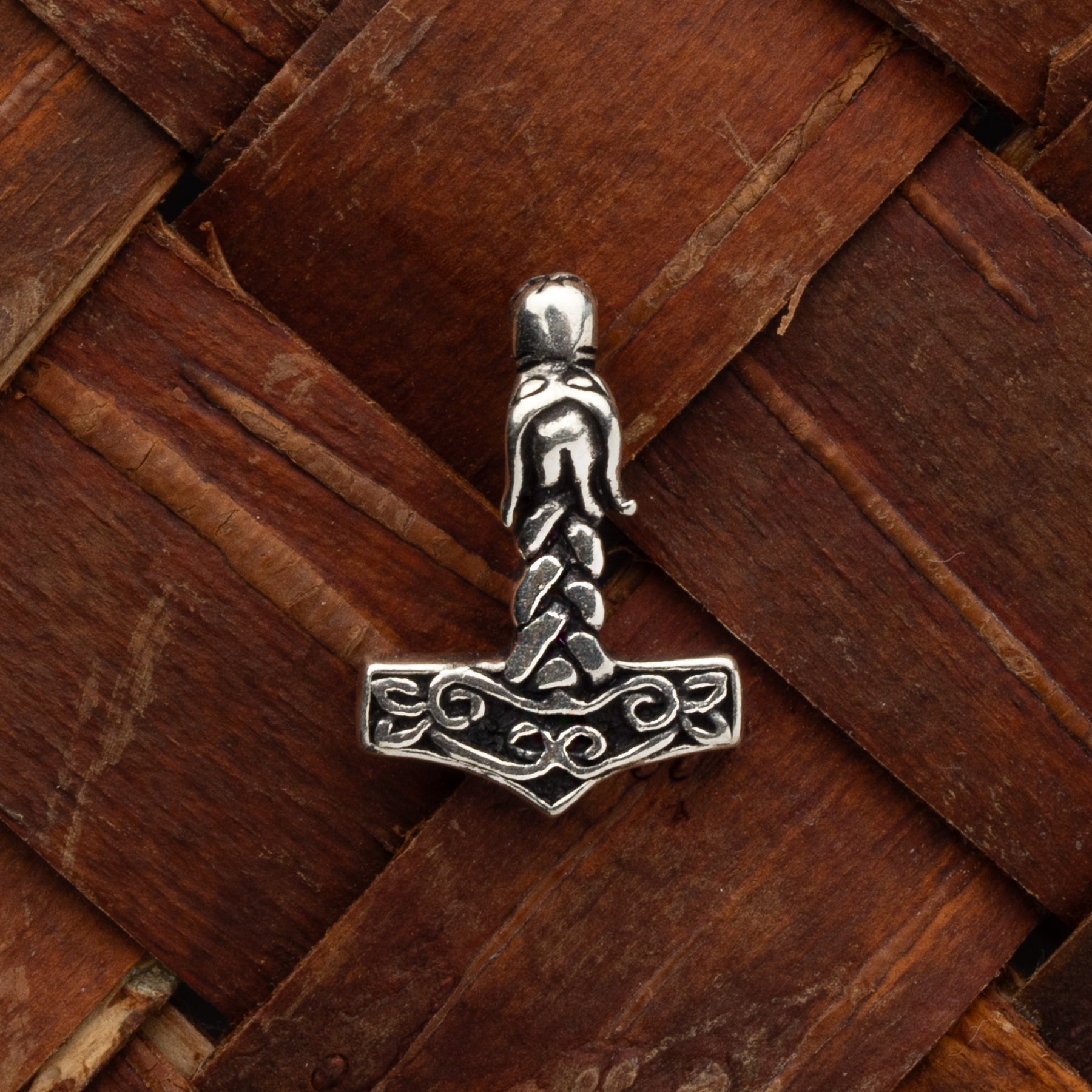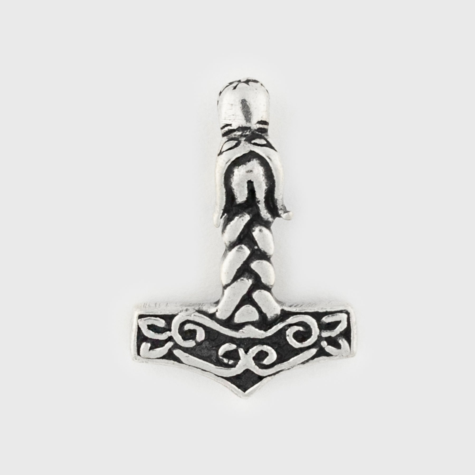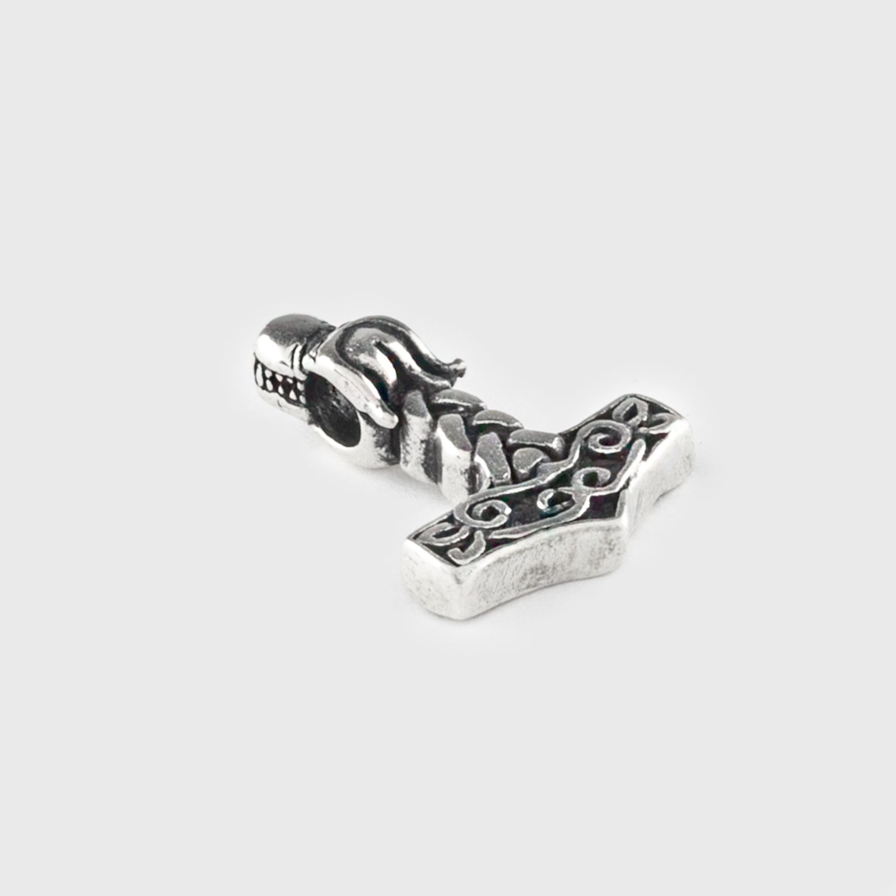 Kleiner, sorgfältig handgefertigter Thorshammer mit einem Drachenkopf.