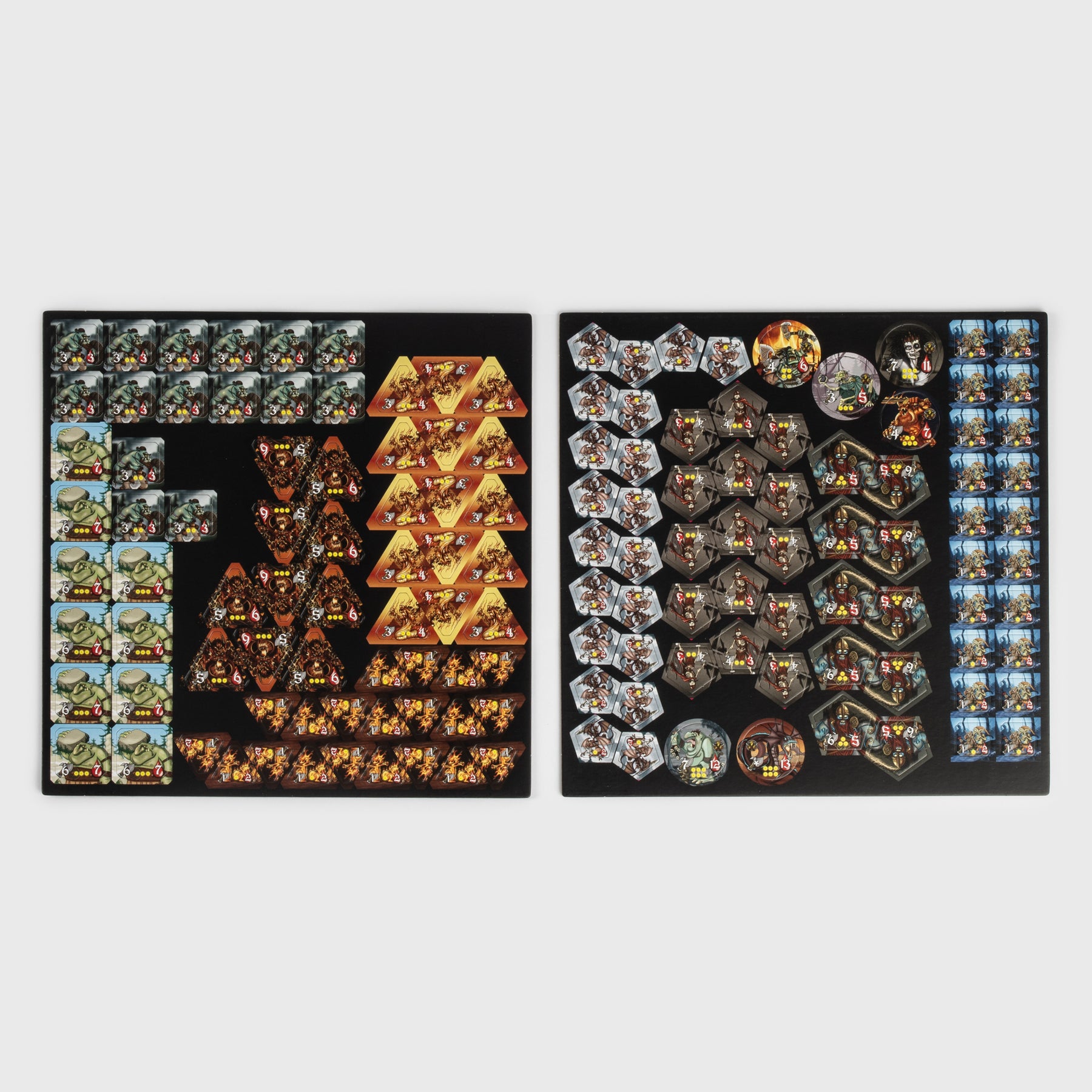 2 Hero Boxes, each with 2 miniatures and 2 decks of 40 cards.