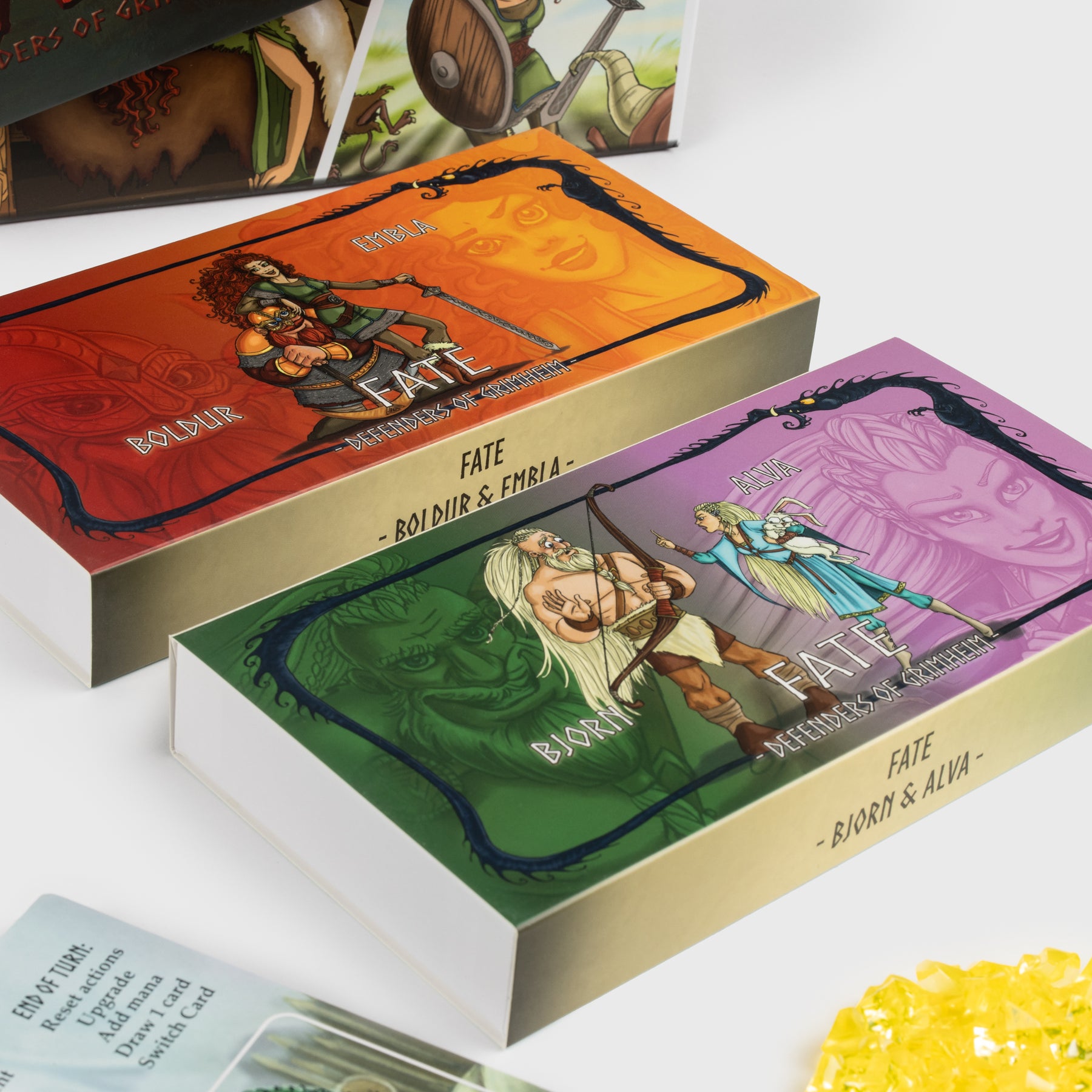 Fate is a cooperative game for 1-4 players who take the roles of talented but inexperienced heroes. Together, they defend Freyja's Well against trolls, the dead, and the fire horde monsters approaching from all sides of the game board.