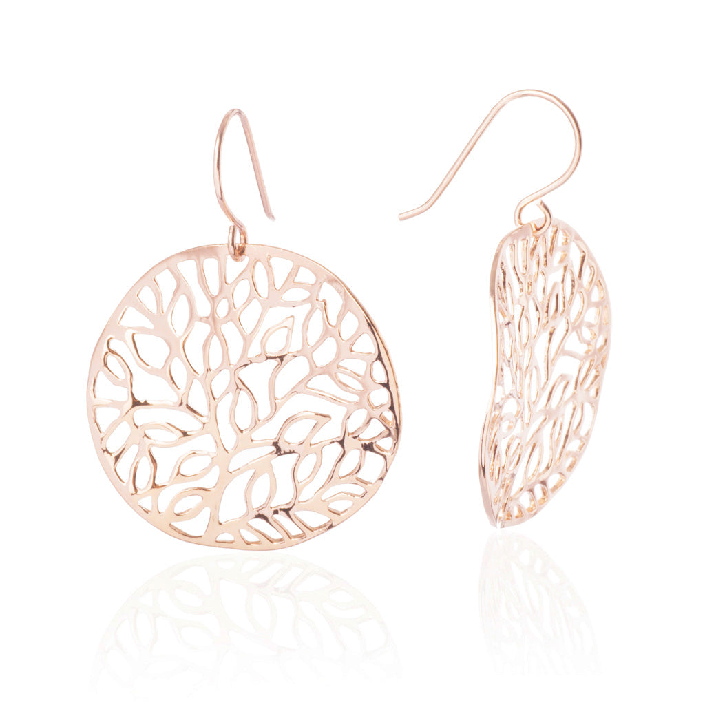 Wunderschöne Ohrringe mit kompliziertem Blattdesign. Fachmännisch handgefertigt aus massivem 925er Sterlingsilber mit einer 18 Karat Rosévergoldung, werden sie garantiert gefallen.