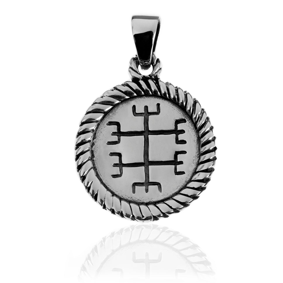 Amulett aus massivem Sterlingsilber mit beiden Varianten des Herzlustafirs - eine pro Seite. Es sind alte isländische magische Stabrunen, die den Mut steigern sollen.