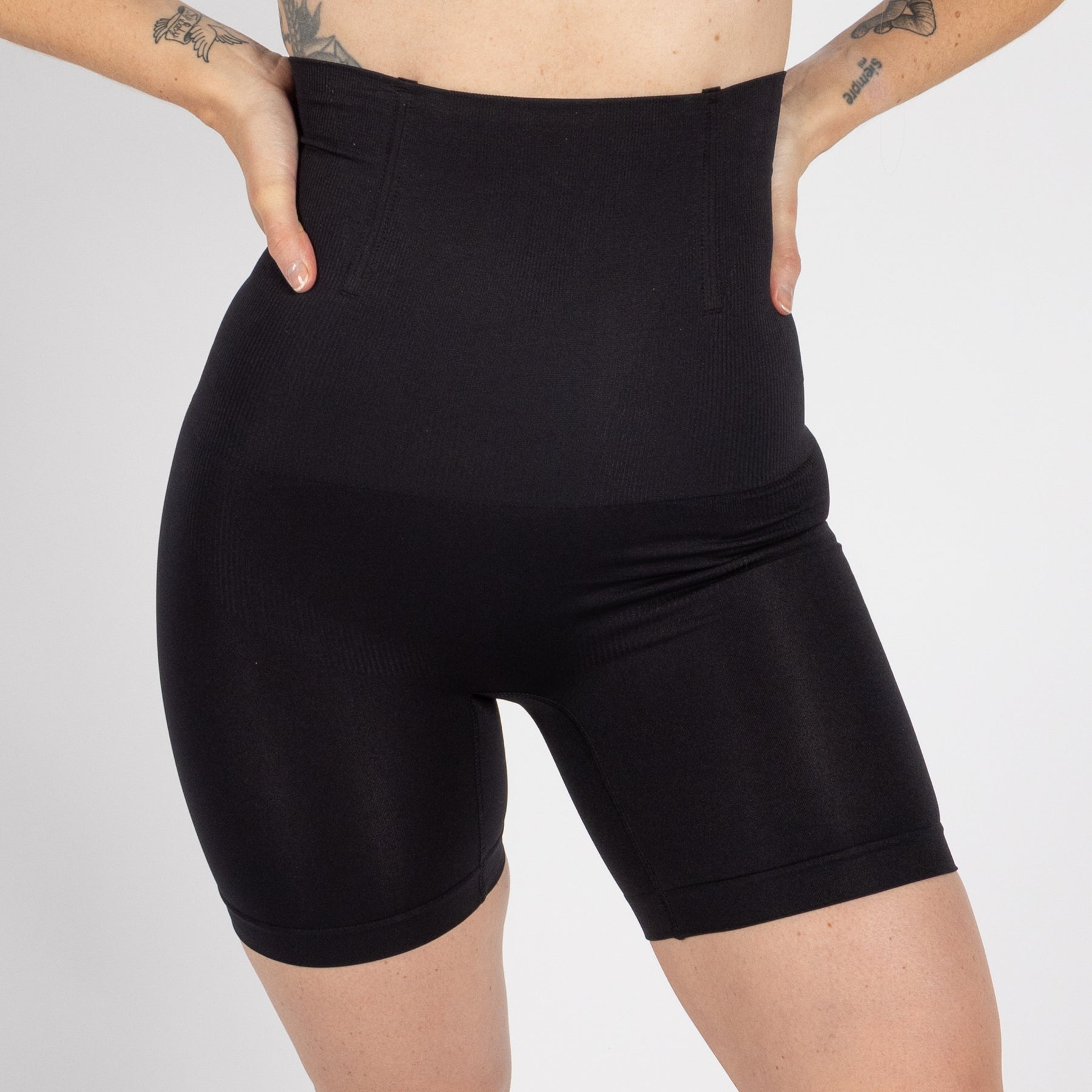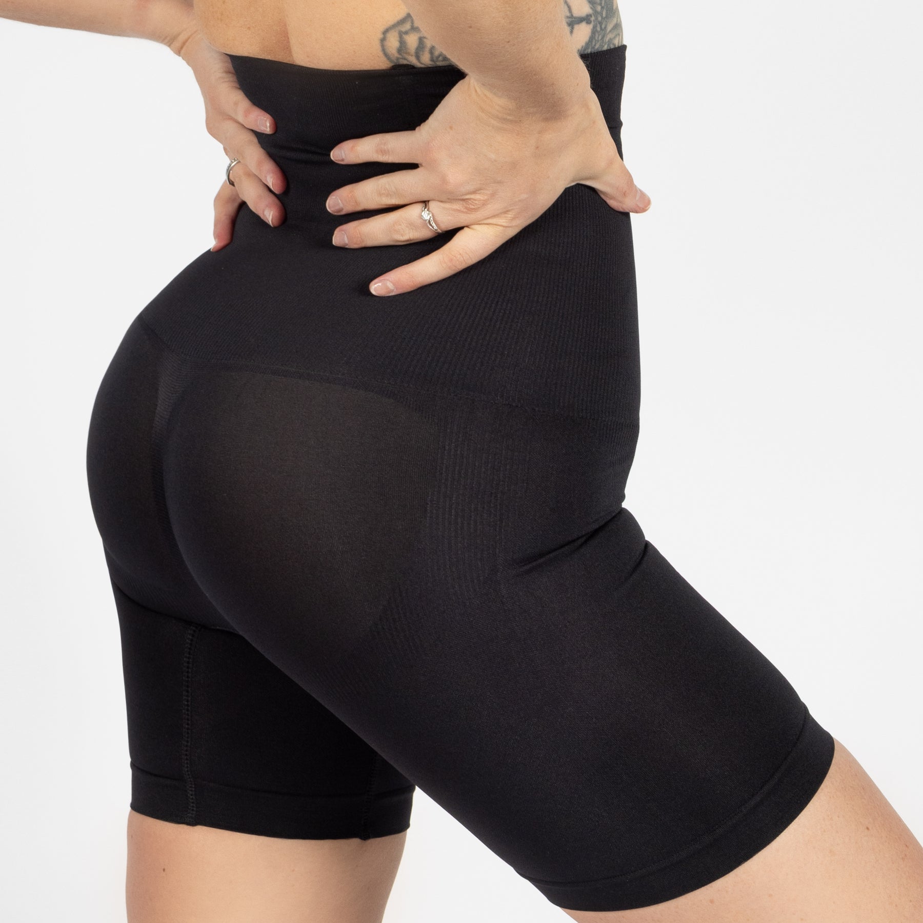 Tragen Sie diese ultra-atmungsaktive High-Waisted Mid Thigh Short für bequeme ganztägige Kontrolle von Bauch, Taille und Oberschenkeln. Mit einem Unterbrustband mit innenliegendem Silikon, das ein Einrollen verhindert, doppellagiger No-Dig-Kompression an den Oberschenkeln, Gesäßtaschen, die heben und definieren, und einem offenen Zwickel