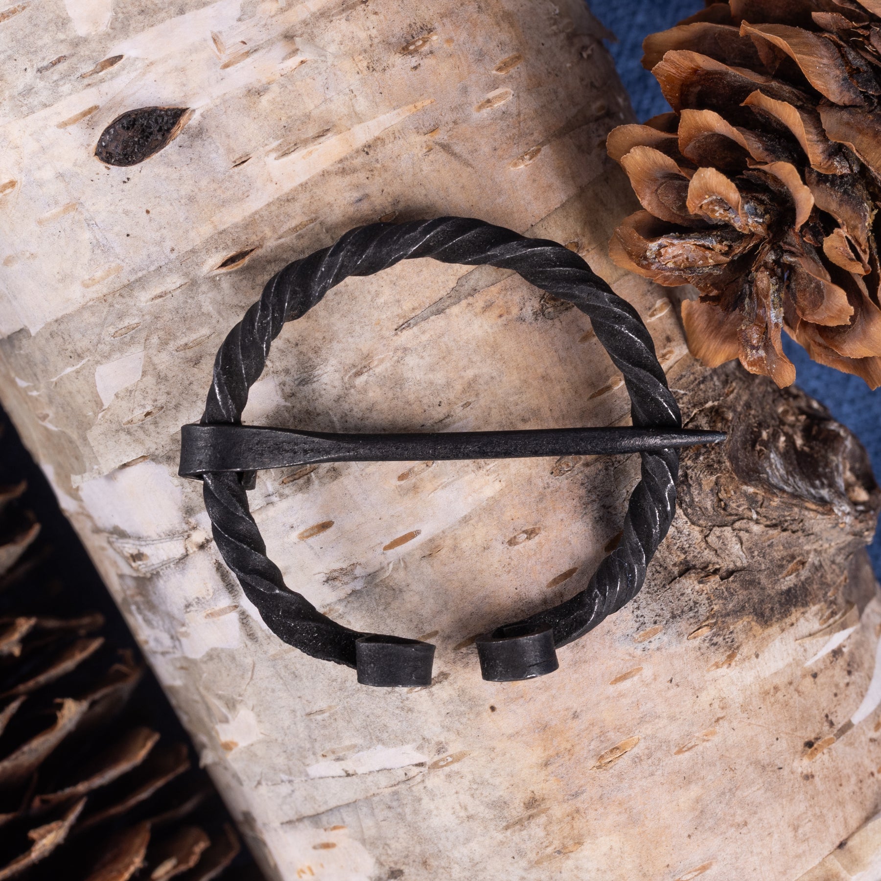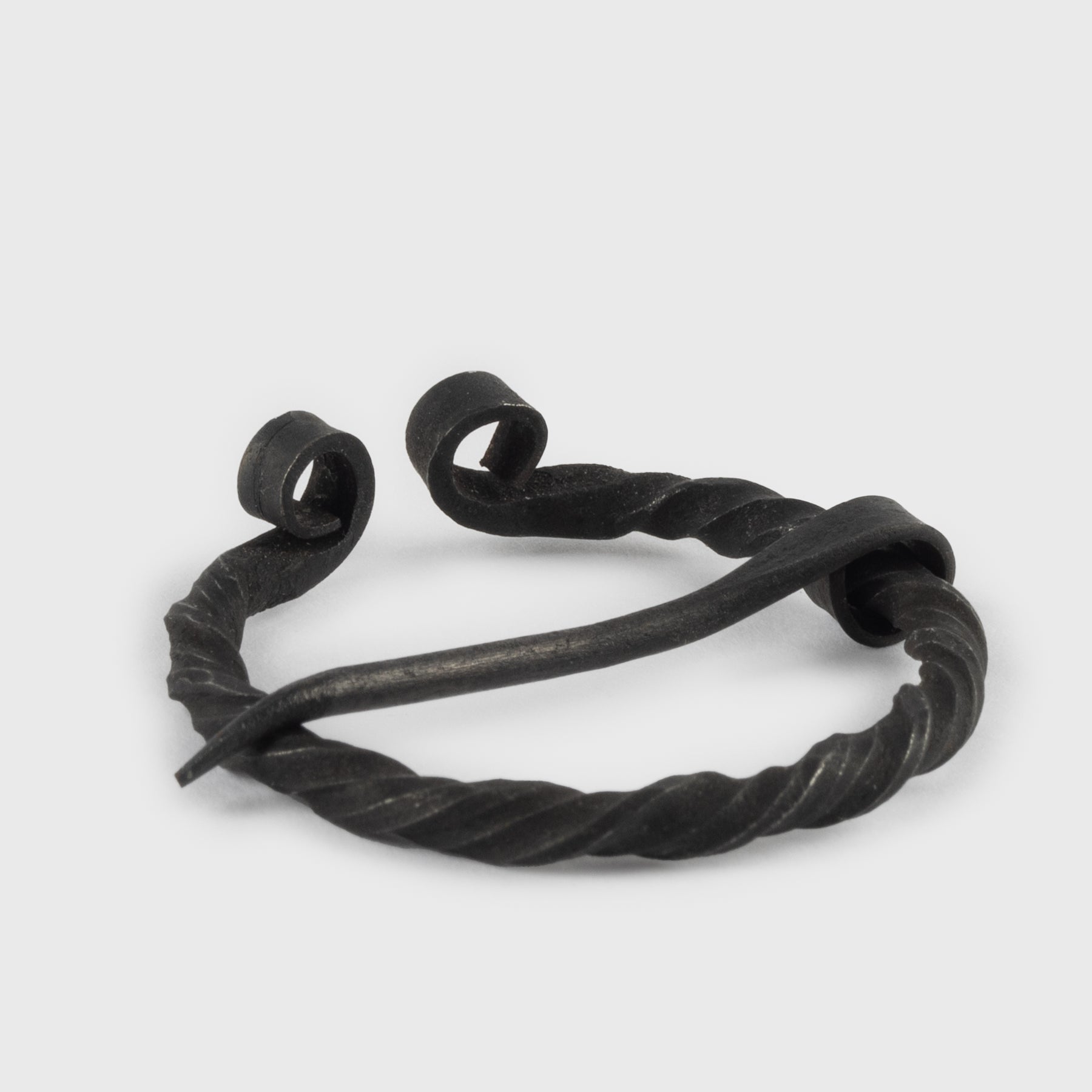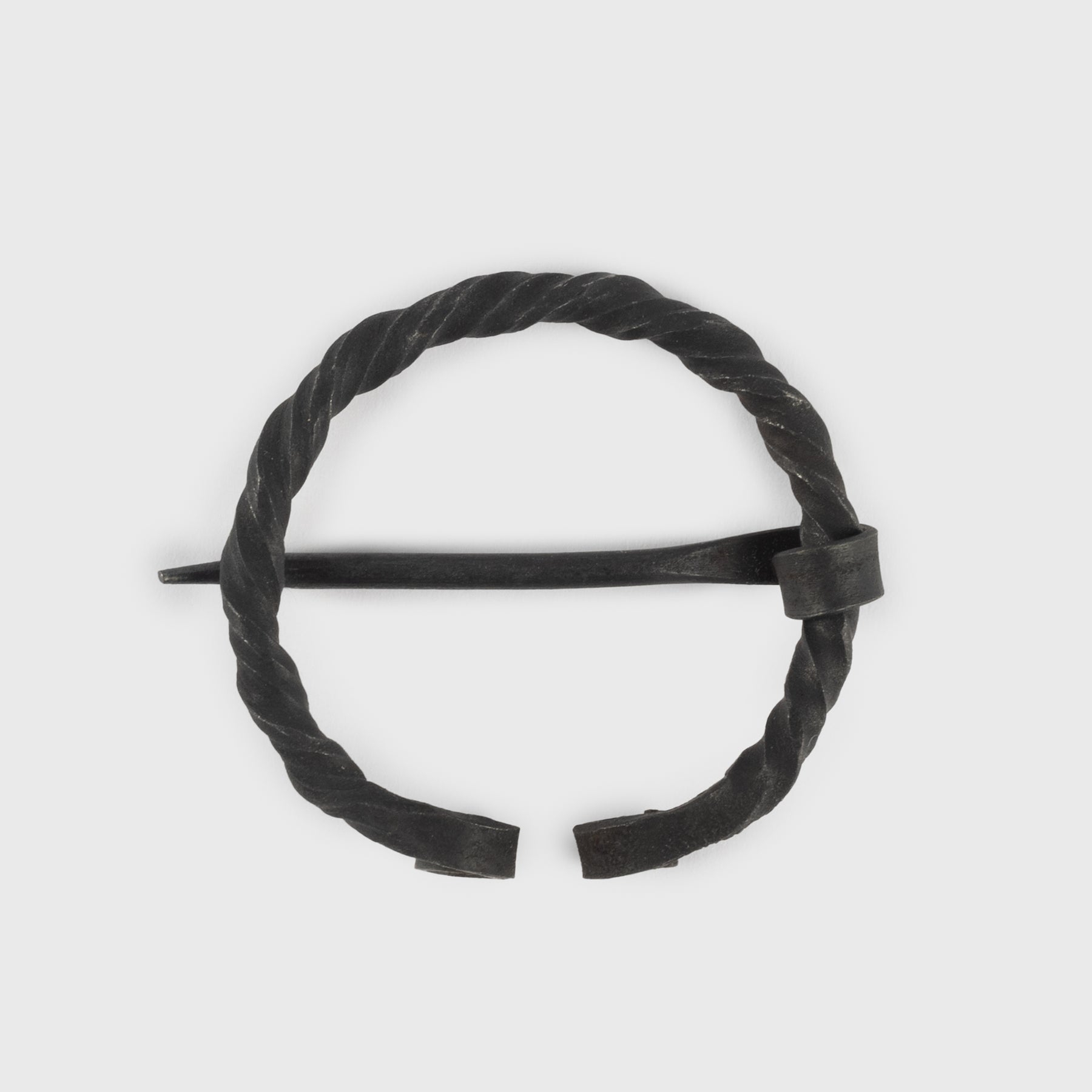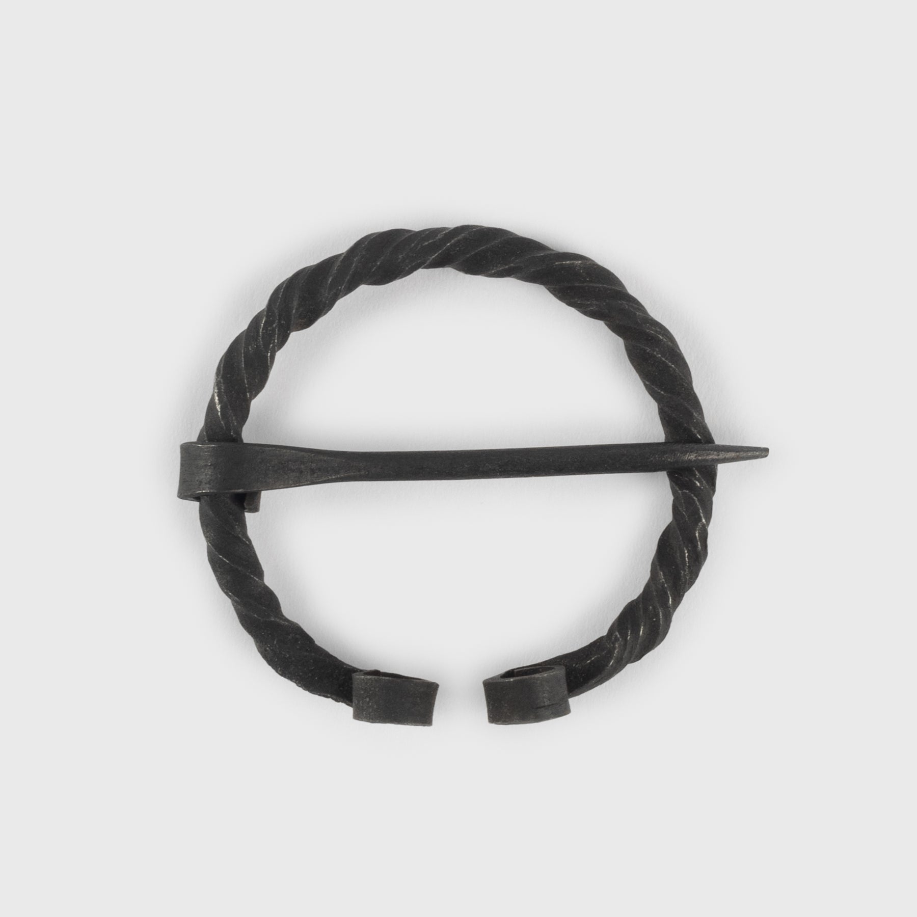 Eine Fibel ist eine Anstecknadel oder Brosche, mit der die Wikinger ihre Kleidungsstücke befestigten. Diese hier ist aus gedrehtem Eisen handgeschmiedet und eignet sich gut für Tuniken, Hemden und dünne Umhänge.