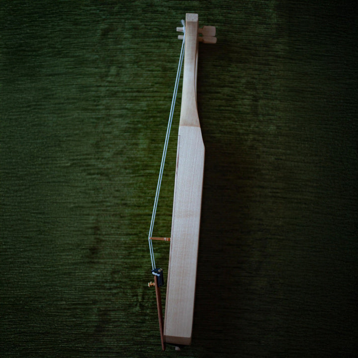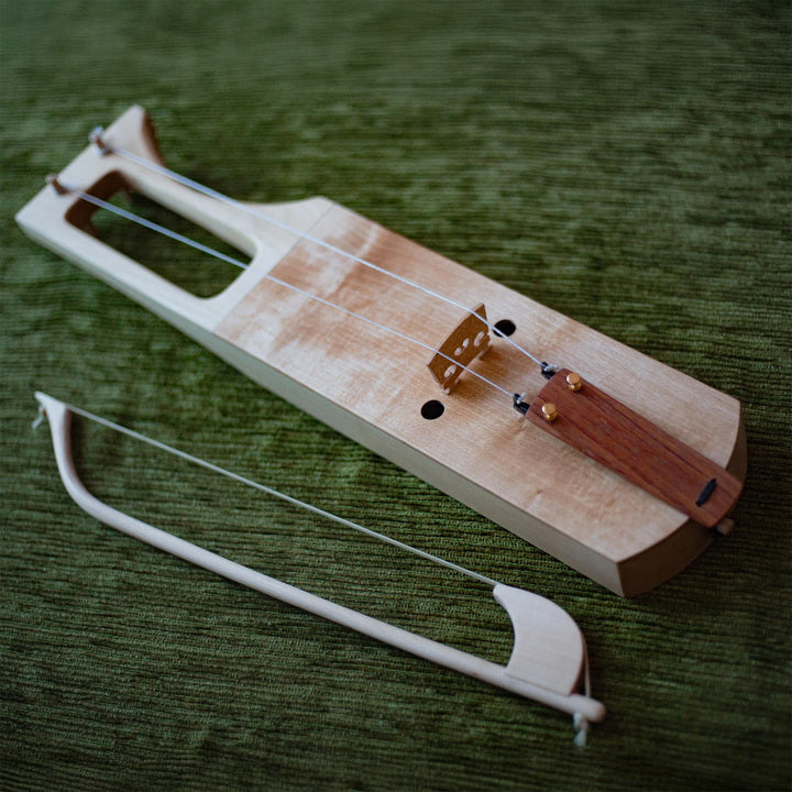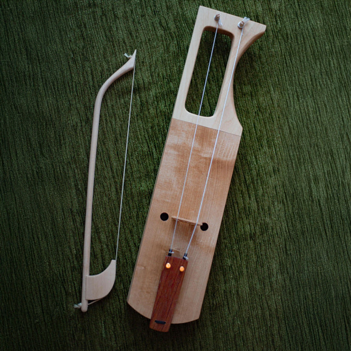 Diese zweisaitige Jouhikko verbindet modernes Design mit traditioneller Handwerkskunst. Der Korpus ist aus einem einzigen Stück Lindenholz geschnitzt, was für Langlebigkeit und eine glatte, gleichmäßige Oberfläche sorgt. Das Instrument ist mit einer feinen Schellackpolitur versehen, die ihm ein elegantes und raffiniertes Aussehen verleiht. Im Inneren sorgen ein integrierter Klangstab und ein Stimmstock für eine verbesserte Resonanz und Tiefe des Jouhikko, wodurch ein voller und klarer Ton entsteht. Im Lieferumfang enthalten ist ein hochwertiger Bogen aus Linde, bespannt mit Rosshaar, sowie ein Block Geigenharz, damit Sie sofort mit dem Spielen beginnen können.