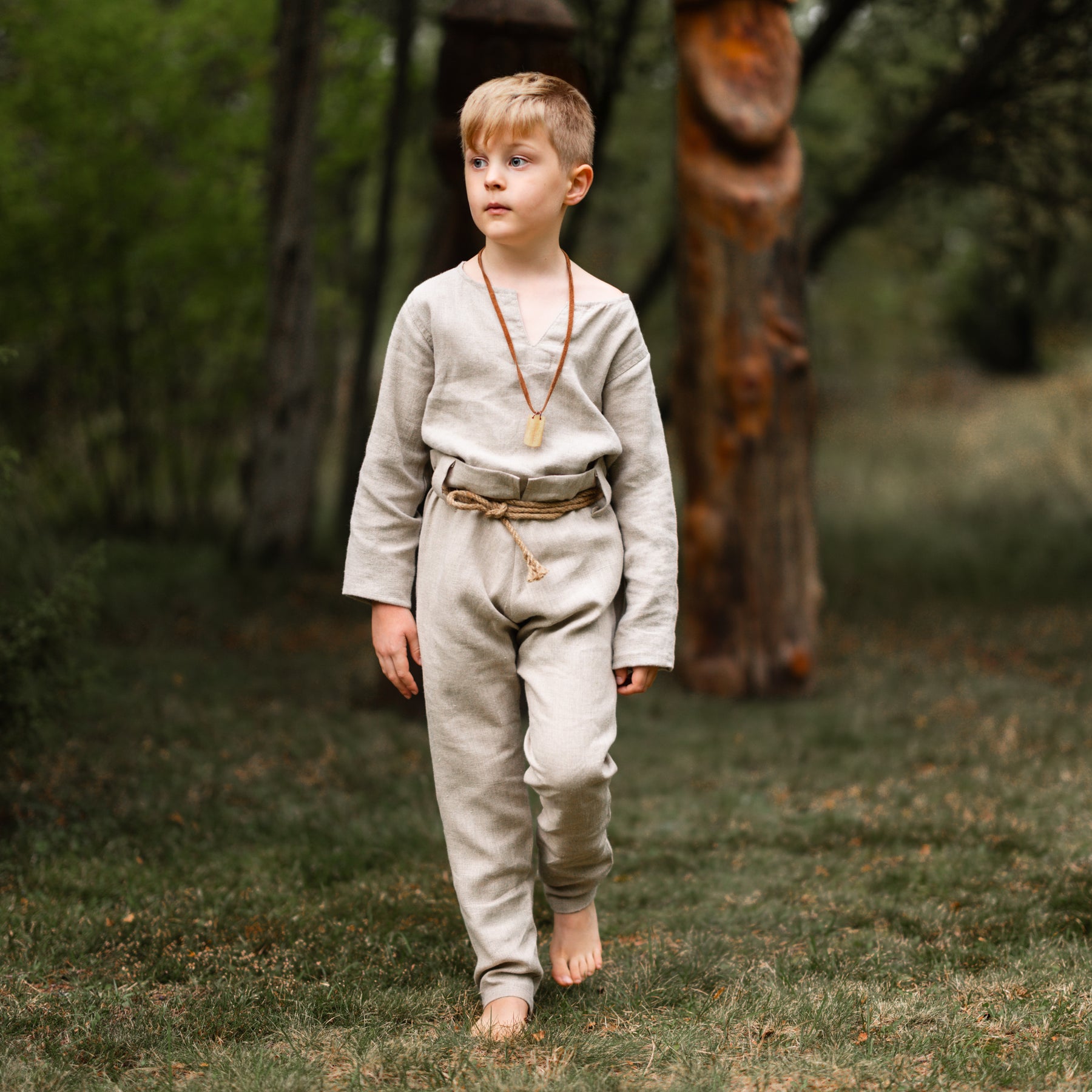 Bequeme Hose nach einem Originalfund in Torsberga (=Thor's Mountain), Schweden. Sie ist aus feinem Leinen gefertigt und eignet sich perfekt zum Tragen während wärmeren Jahreszeiten. In der kalten Jahreszeit lässt sie sich gut unter Wollhosen tragen.