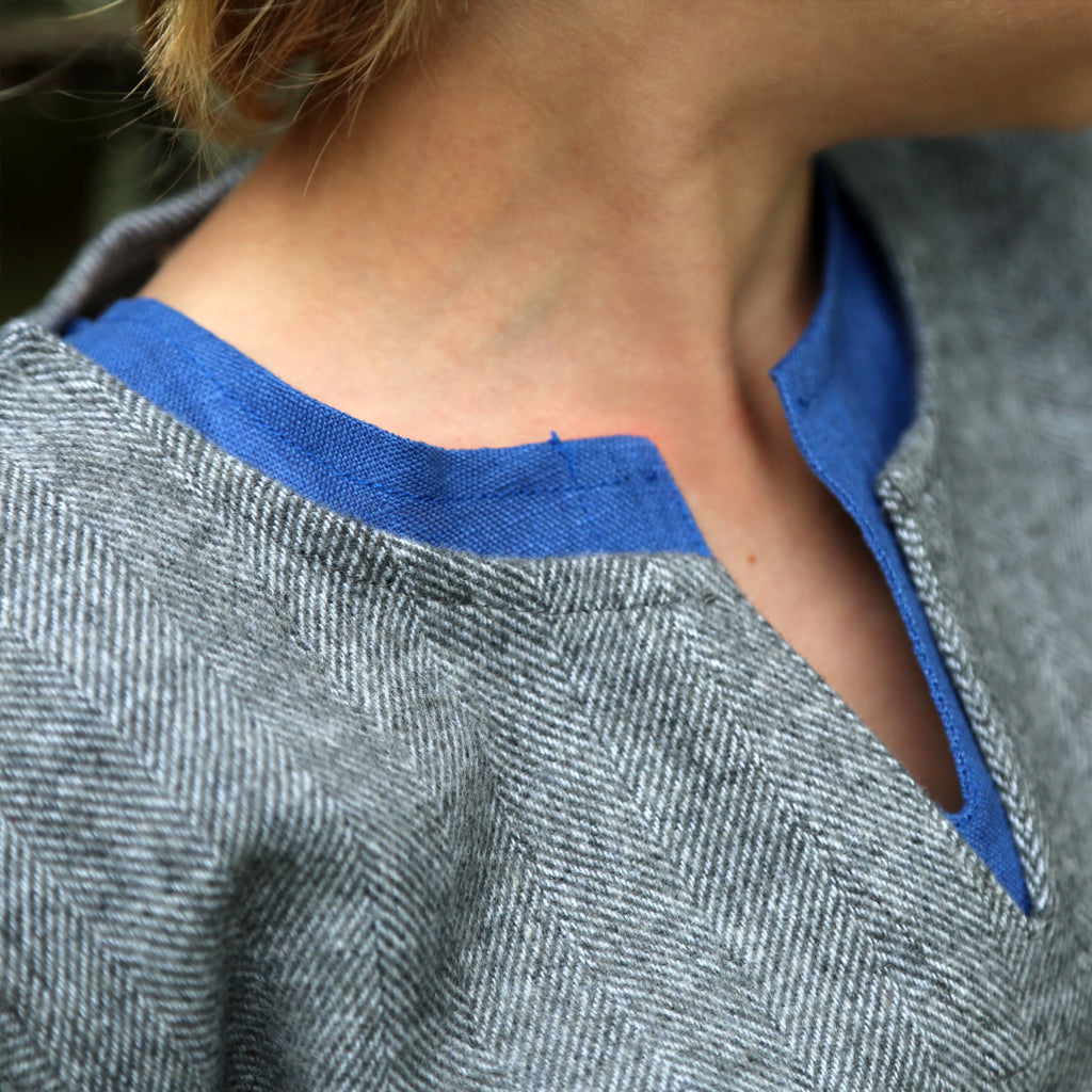 Bequeme Tunika aus weicher Fischgrätenwolle. Für einen kompletten Look können Sie eine Leinen-Tunika darunter tragen.