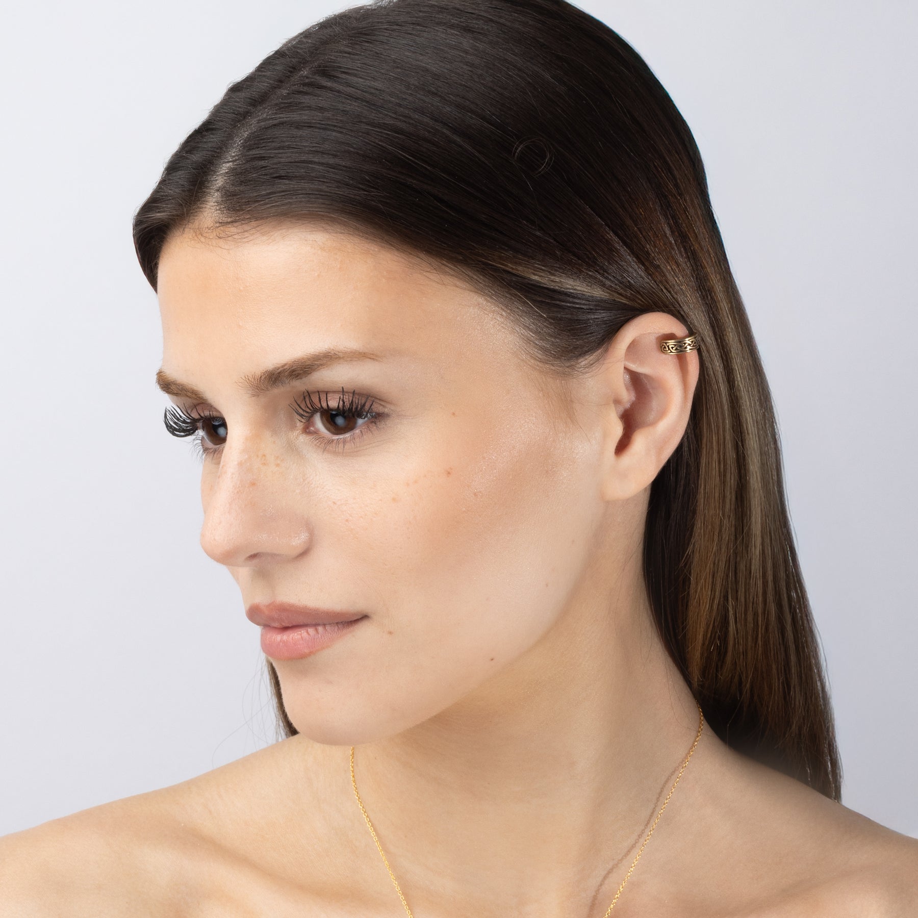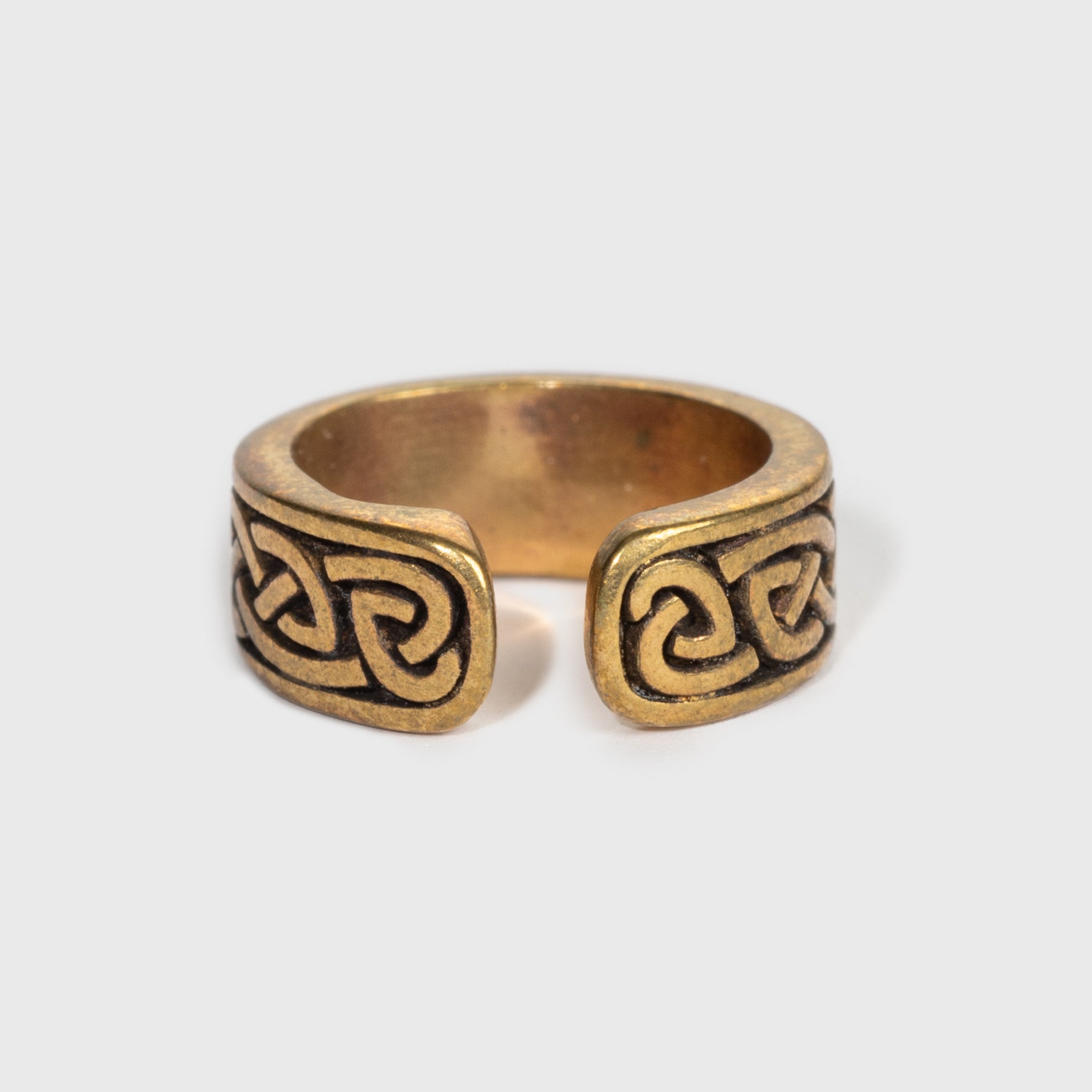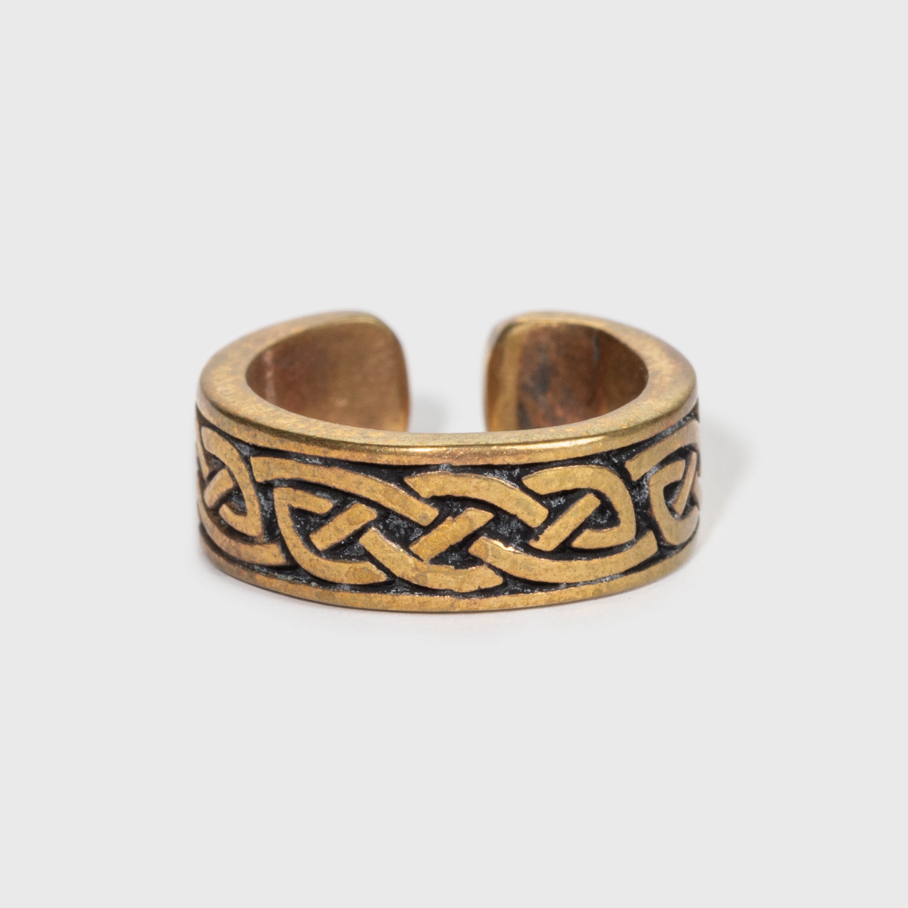 Diese Ohrklammer ist aus Bronze handgefertigt und weist ein komplexes Knotenmuster auf. Sein offenes Design ermöglicht eine sanfte, verstellbare Passform, so dass es leicht zu tragen und zu entfernen, wie gewünscht.