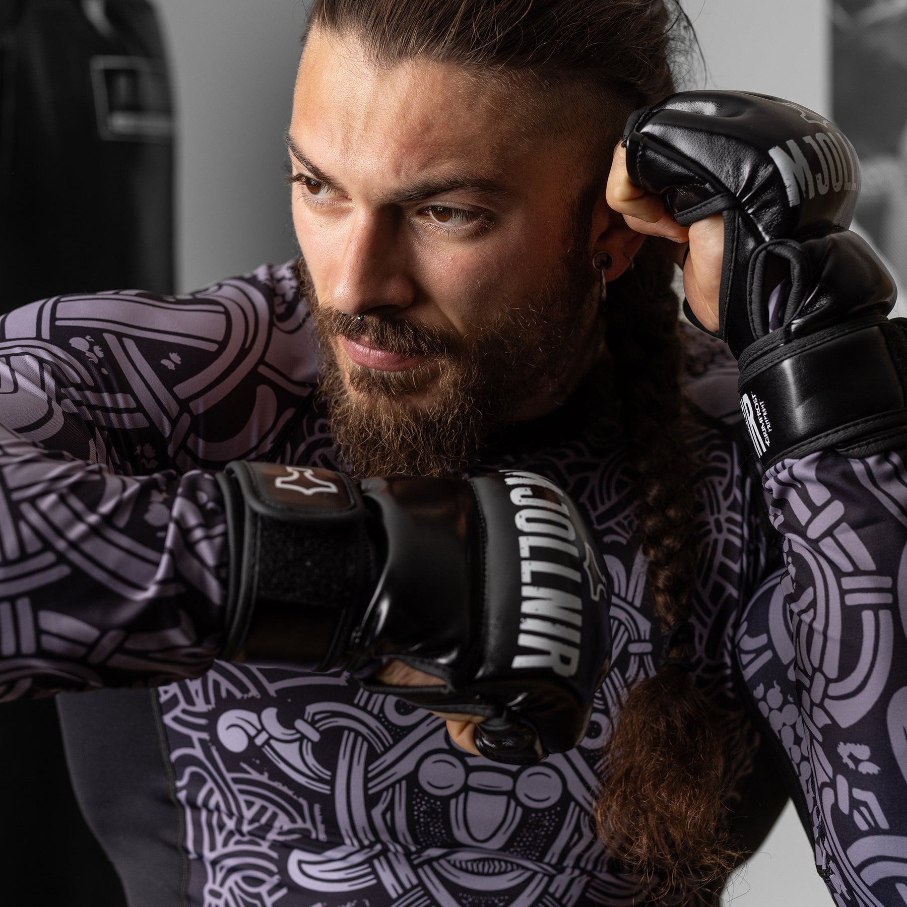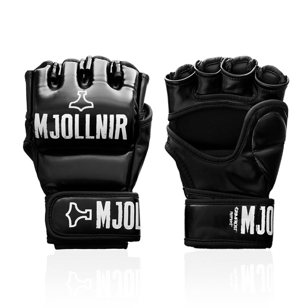 Strapazierfähige, fein verarbeitete MMA-Handschuhe für Grappling, Sparring und Pratzentraining. Die durchgehende Handgelenksmanschette bietet hervorragenden Halt für das Handgelenk, während die Polsterung sowohl die Hand als auch den Daumen schützt. Die Handgelenkmanschette hat ein Mjollnir-Logo.