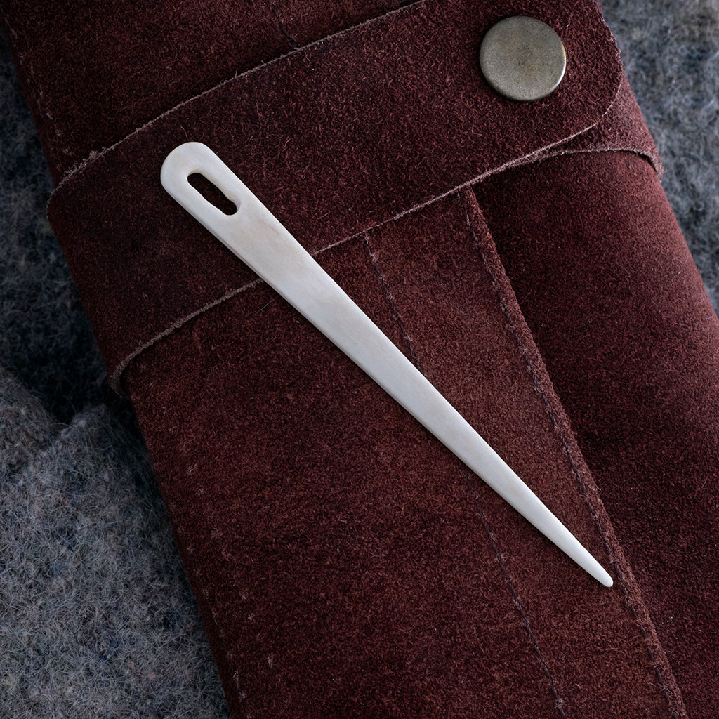 Eine traditionelle Nadel, die für das Nadelbindungs-Stricken verwendet wird. Nadelbindung war die Stricktechnik, die in der Wikingerzeit verwendet wurde und die in den nordischen Ländern bis heute überlebt hat.
