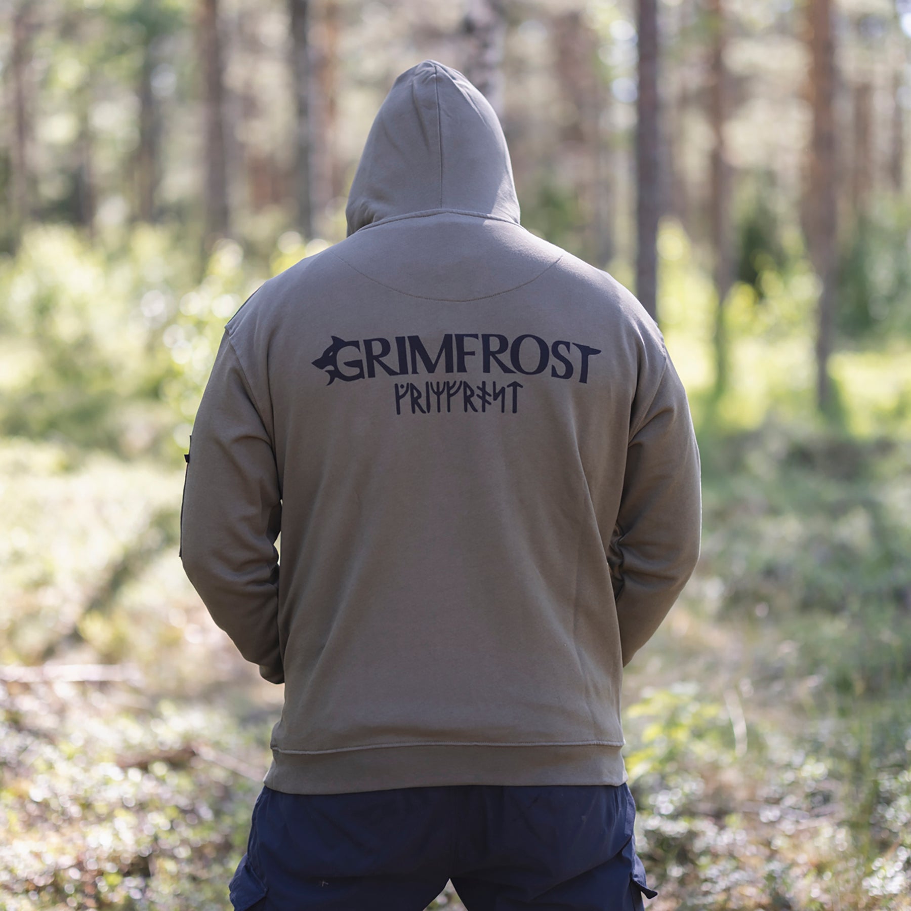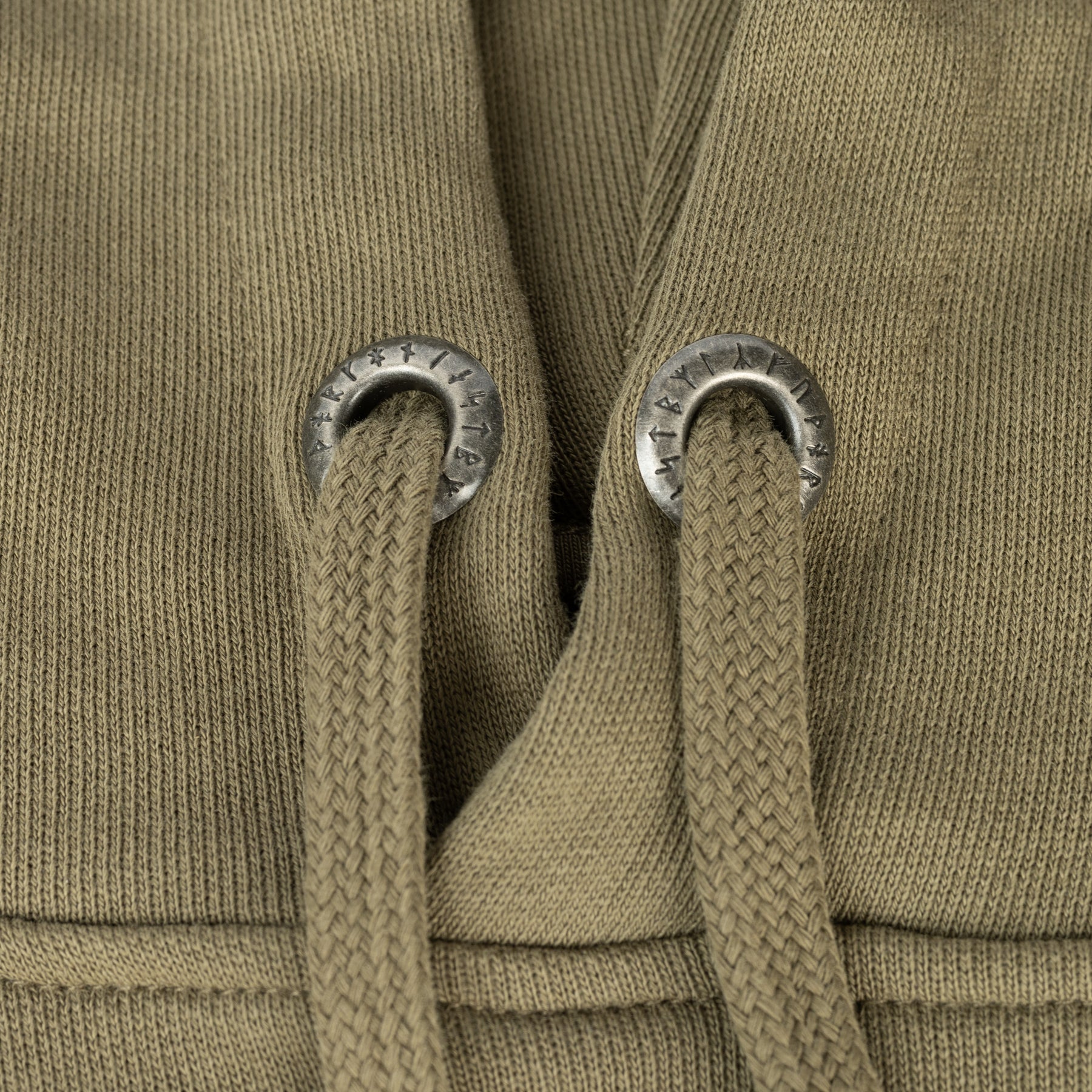 Lernen Sie Ihren neuen Lieblings-Hoodie kennen. Dieser Premium-Kapuzenpullover wurde speziell für Grimfrost aus weicher, luxuriöser Bio-Baumwolle hergestellt. Sogar das Färbeverfahren ist komplett biologisch, was sowohl für Sie als auch für Mutter Erde gut ist. Der Kapuzenpullover hat eine Reißverschlusstasche am linken Arm und geräumige Kängurutaschen. Um das Ganze abzurunden, haben wir die Ösen des Kordelzugs mit einem Runenkreis des jüngeren Futhark versehen.