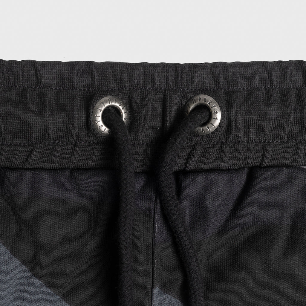 Sie ist mit einem großen "Berserker"-Aufdruck auf dem linken Bein und insgesamt drei Taschen ausgestattet. Um das Ganze abzurunden, haben wir jede Öse des Kordelzugs mit einem Runenkreis des Jüngeren Futhark versehen.